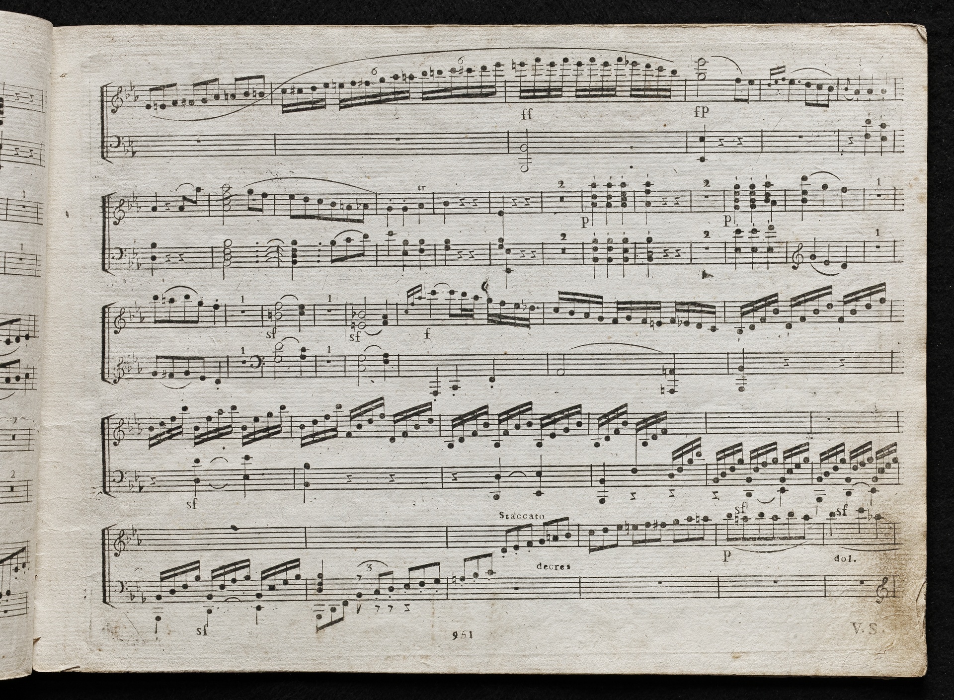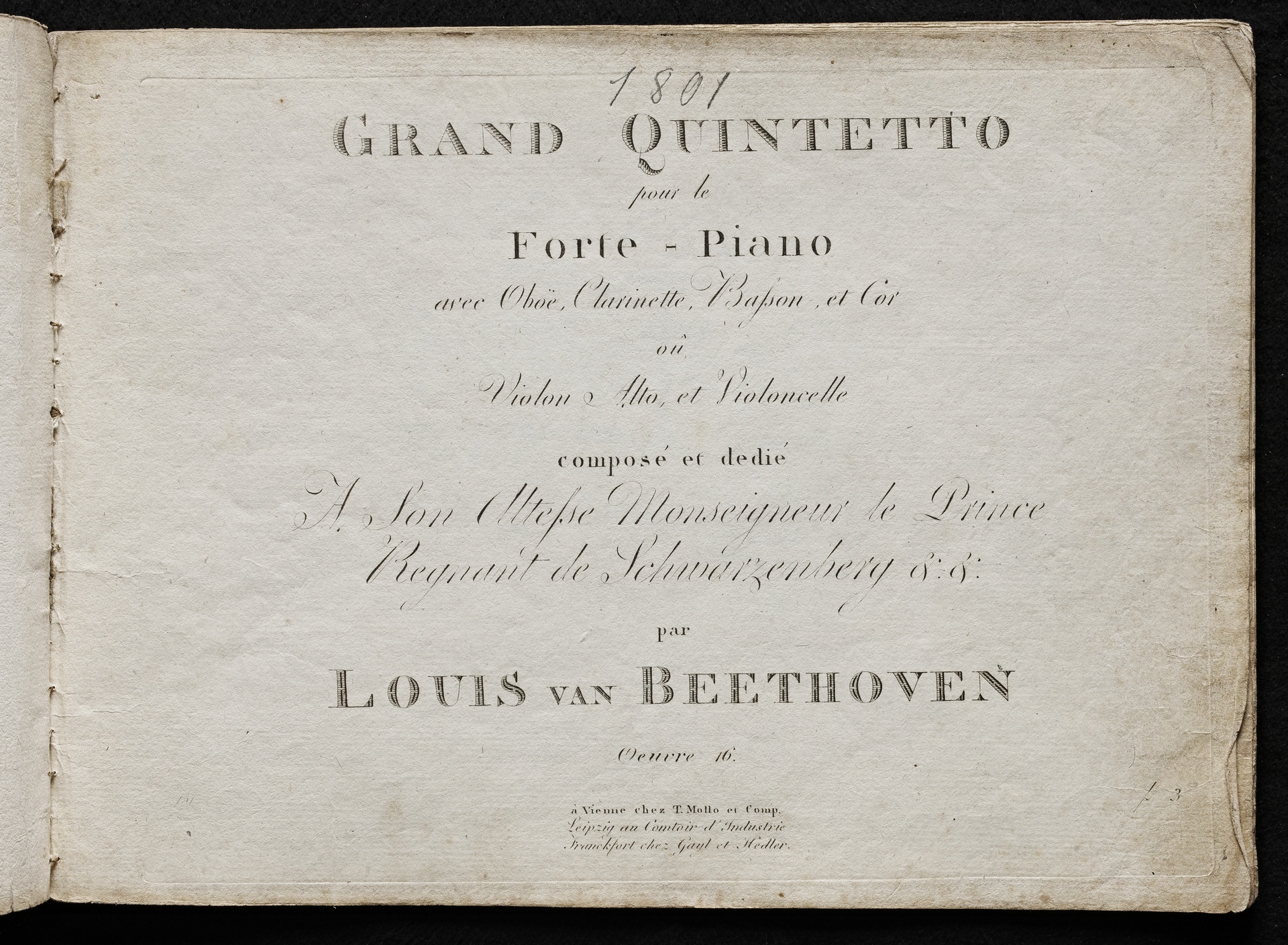 Ludwig van Beethoven, Quintett für Klavier, Oboe, Klarinette, Fagott und Horn (Es-Dur) op. 16 und Fassung für Klavier, Violine, Viola, Violoncello, Stimmen, Mollo, 951