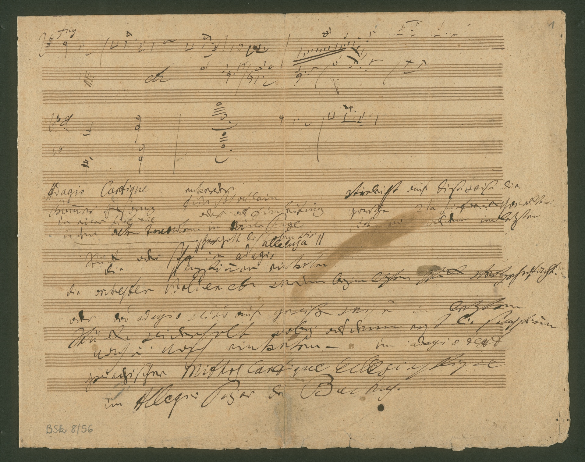 Ludwig van Beethoven, Skizzenblatt zur Klaviersonate op. 106, 2. Satz und zu einer Chorsinfonie (op. 125 oder Unv 3), Autograph