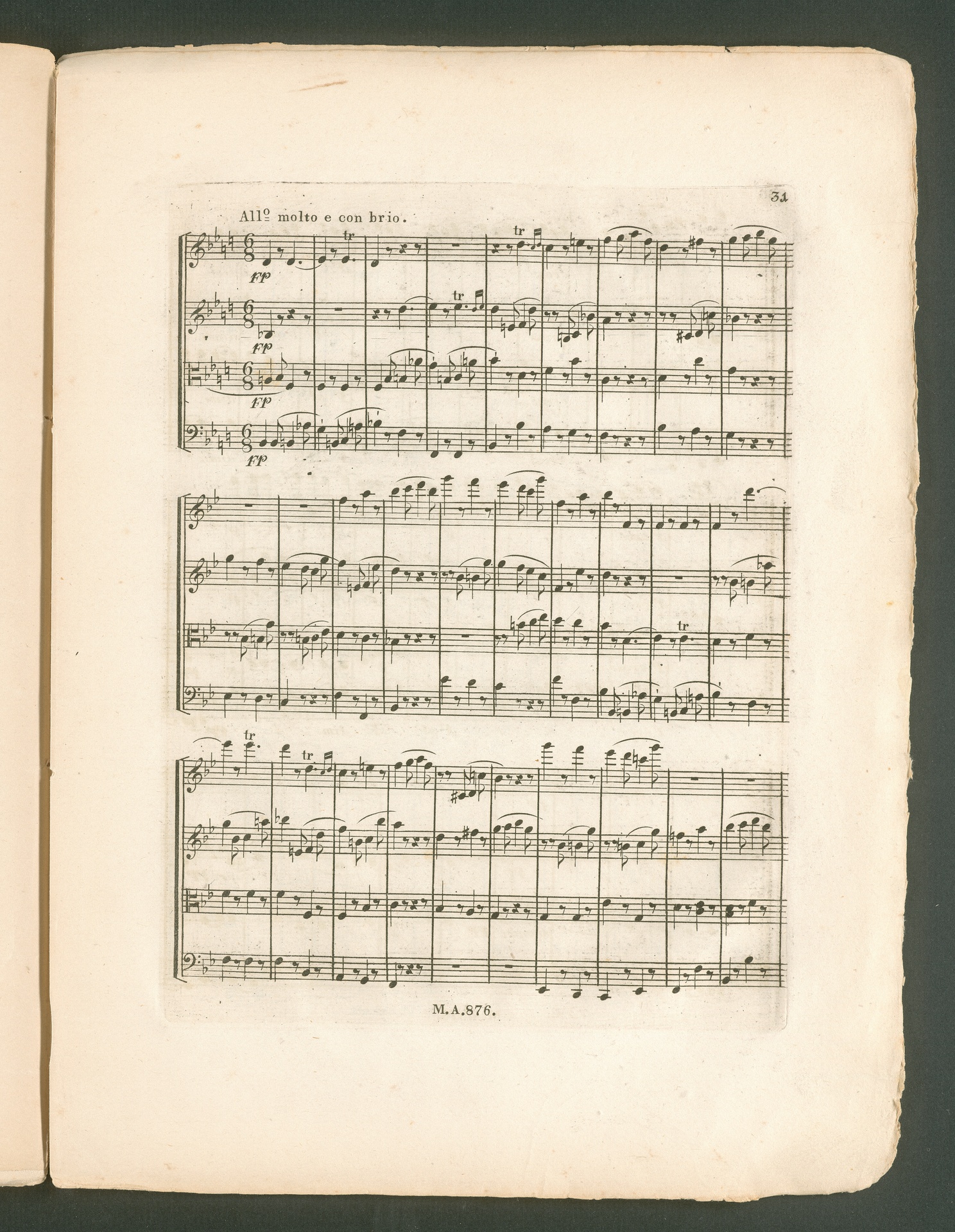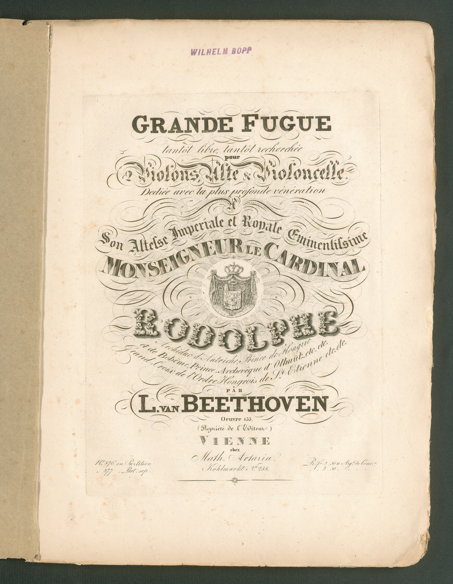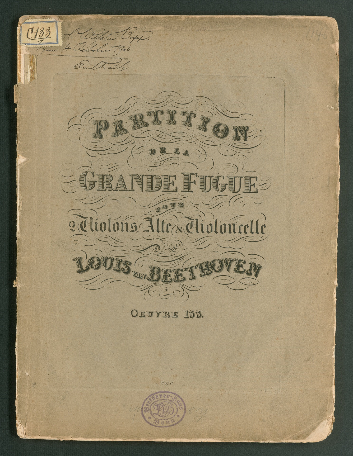 Ludwig van Beethoven, Fuge für 2 Violinen, Viola, Violoncello (B-Dur) op. 133, Partitur, Artaria, 876