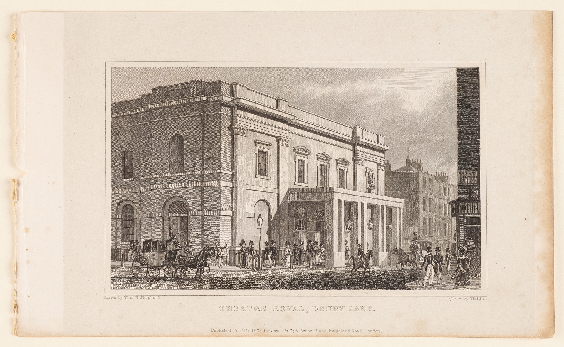 Das königliche Theater Dury Lane in London - Stich von Thomas Dale nach einer Zeichnung von Thomas Hosmer Sheperd, veröffentlicht von Jones & Co., London, 1828