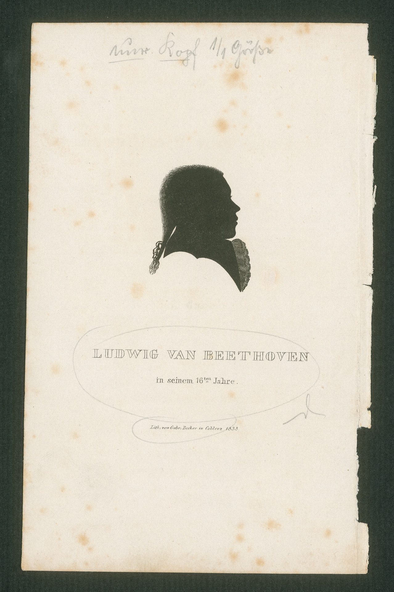 Ludwig van Beethoven im Alter von 15 Jahren - Lithographie der Gebrüder Becker nach einer Silhouette von Joseph Neesen aus den 1780er Jahren, Koblenz, 1838