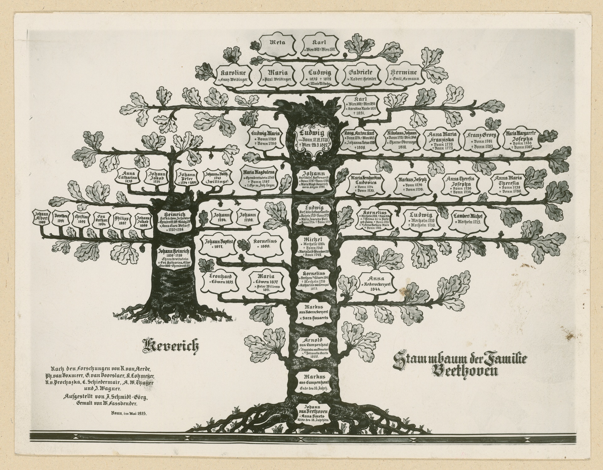 Stammbaum der Familie van Beethoven - Darstellung von Willy Faßbender nach einem Entwurf von Joseph Schmidt-Görg, Fotografie, Bonn, um 1935