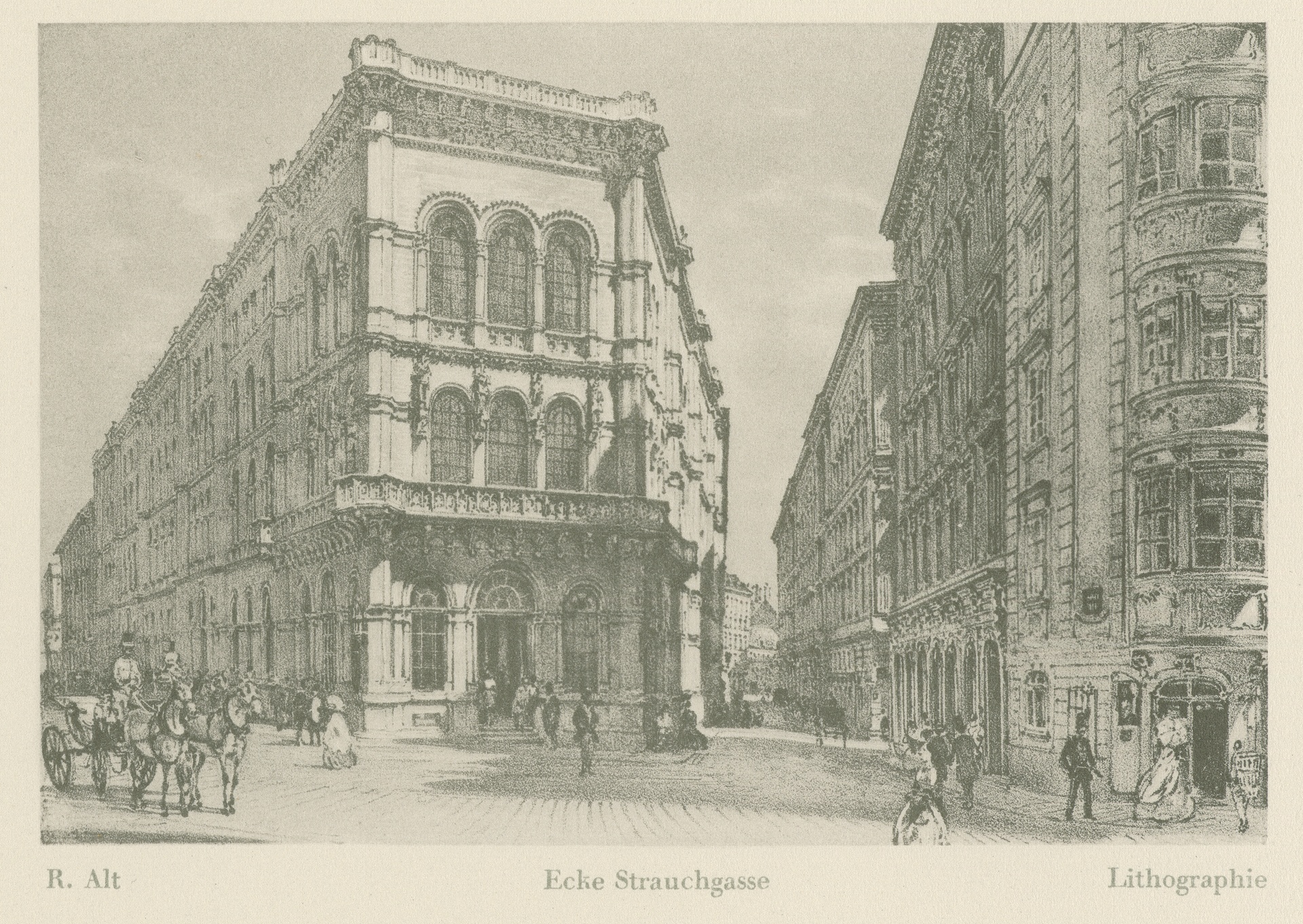 Das neue Bankgebäude in der Herrengasse in Wien, um 1860 - Reproduktion einer Lithographie von Rudolf von Alt nach einer eigenen Zeichnung