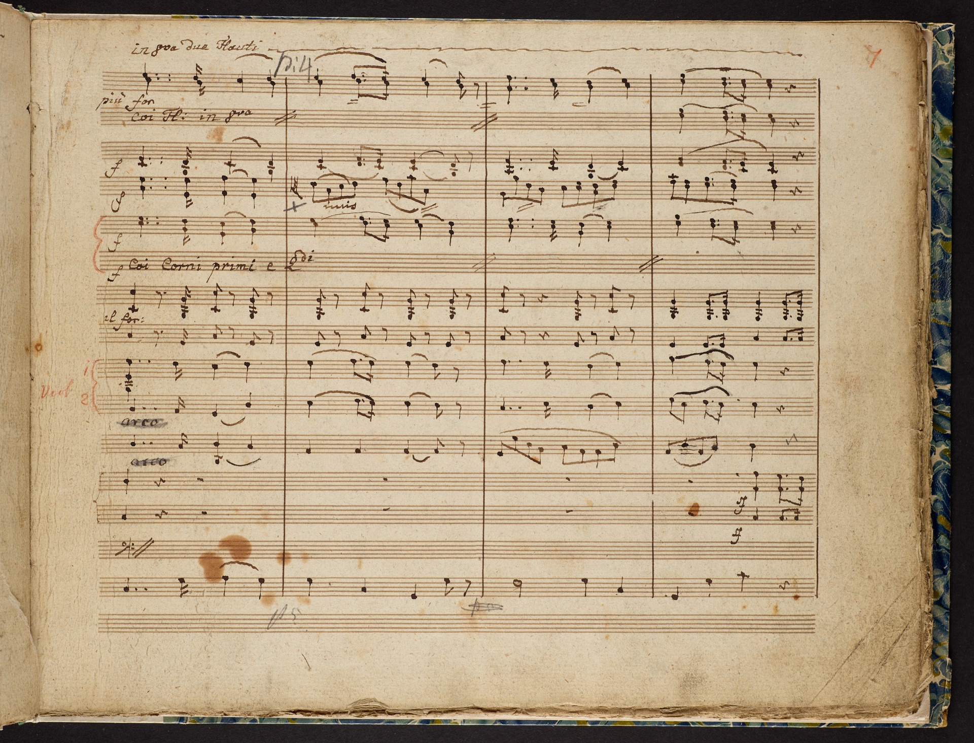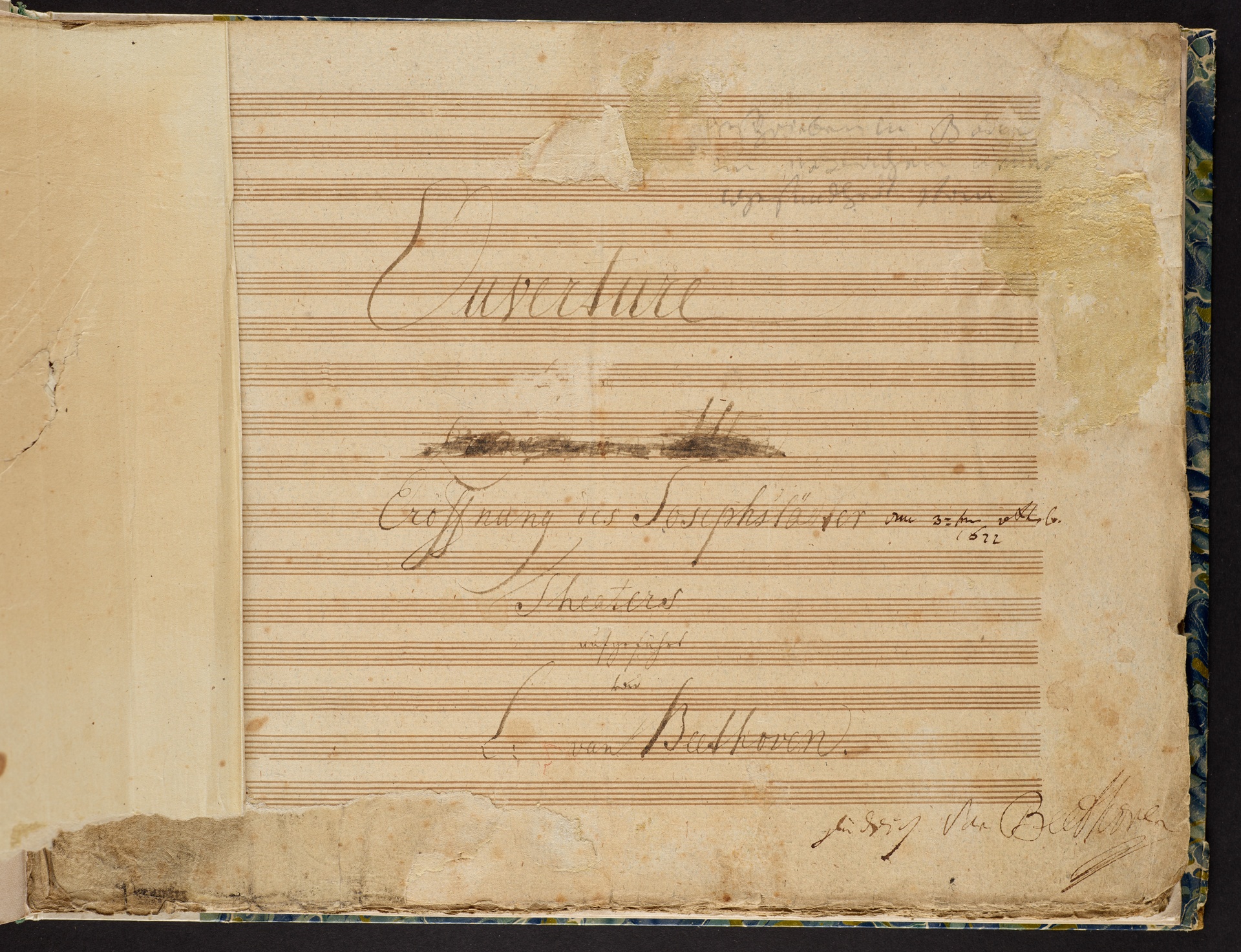 Beethoven befand sich zur Kur in Baden, als im September 1822 der Wunsch an ihn herangetragen wurde, die bereits aus früheren Stücken zusammengestellte Musik zur Meisls einaktigem Stück Die Weihe des Hauses mit neuen Kompositionen zu ergänzen. Der Zeitdruck war groß, mit Beethovens Musik auf Meisls Festspiel sollte Anfang Oktober das Josephstädter Theater wiedereröffnet werden. Offenbar fühlte sich Beethoven durch die Wasser- und Bäderanwendungen bald so gestärkt, dass er innerhalb weniger Tage eine Ouvertüre komponieren konnte. Auf der Partiturkopie, die nach dem Autograph als erste Abschrift angefertigt wurde, vermerkte er mit Bleistift: "geschrieben in Baden im erwachen neuer Gesundheit" (zweites Titelblatt, Bild 7). Wenige Jahre später, beim Streichquartett a-Moll op. 132, verband Beethoven noch einmal die Entstehung eines Werks mit seiner Genesung.
