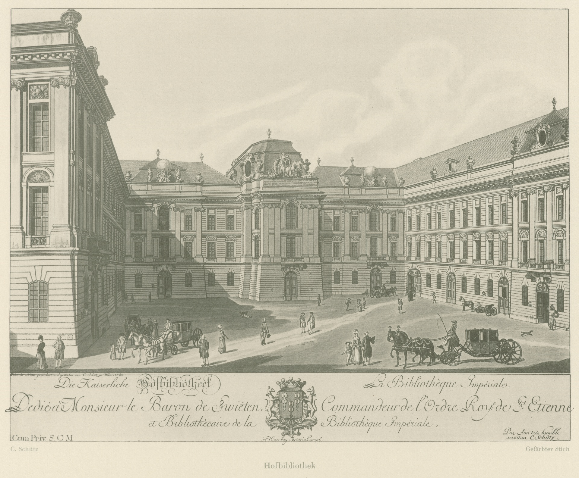 Die Hofbibliothek in Wien, 1780 - Reproduktion eines Stiches von Carl Schütz nach einer eigenen Zeichnung, Wien, 1929