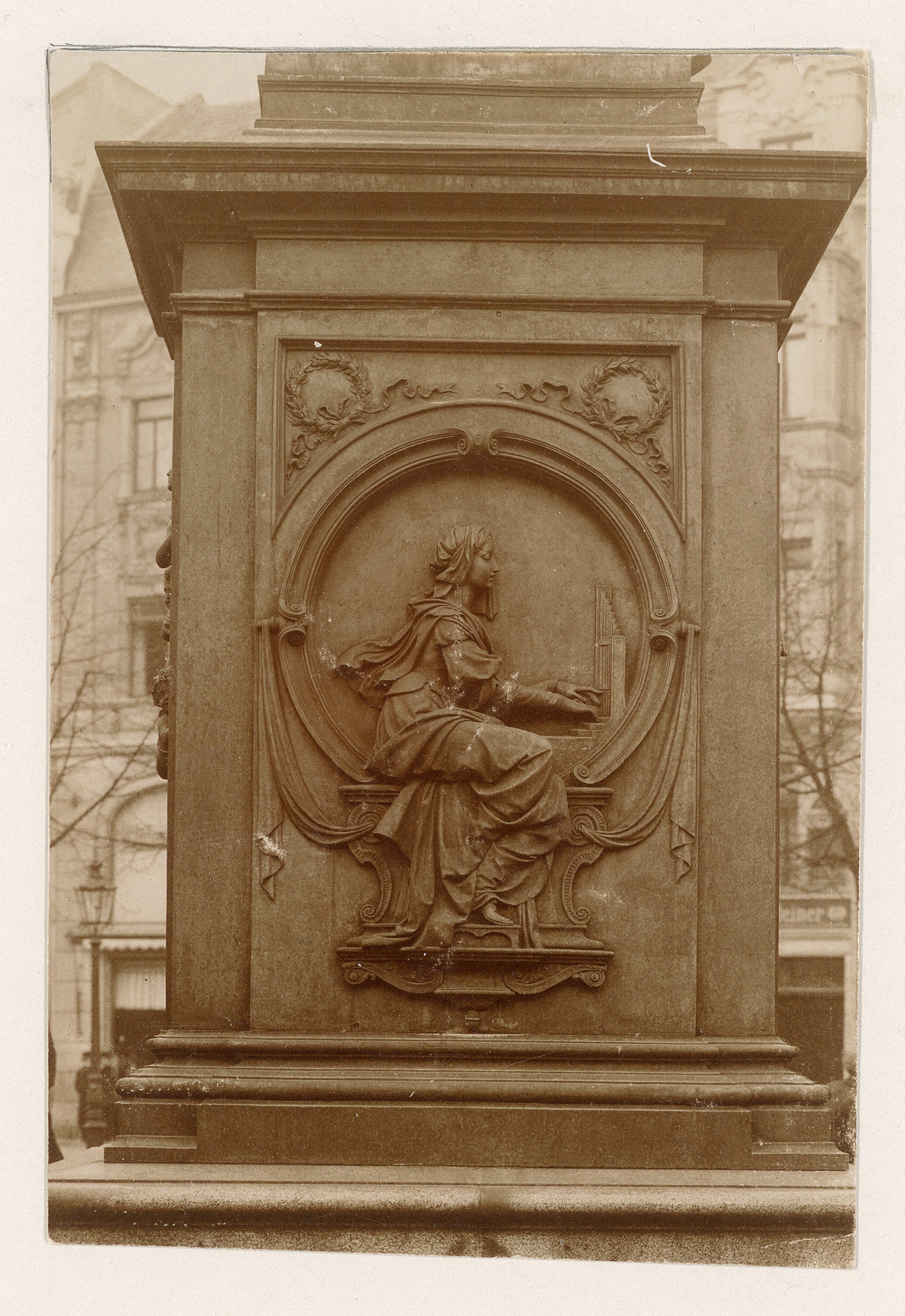 Allegorie der geistlichen Musik; Sockelrelief des Beethoven-Denkmals auf dem Bonner Münsterplatz - Fotografie der Plastik von Ernst Julius Hähnel