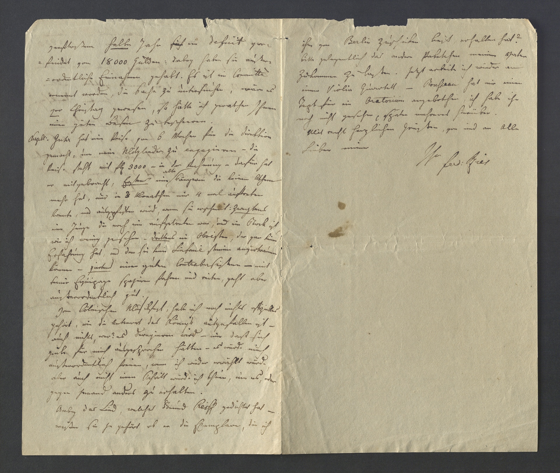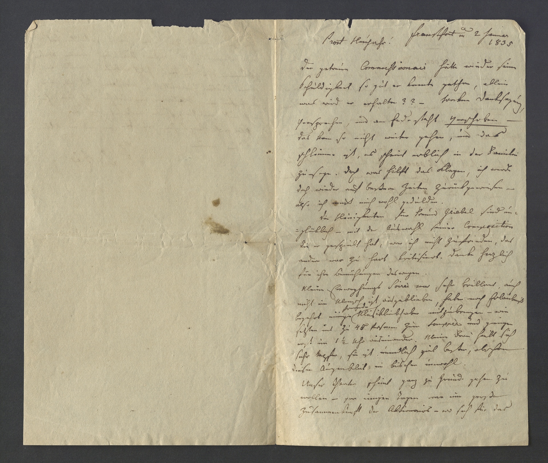 Ferdinand Ries, Brief an Franz Gerhard Wegeler in Koblenz, Frankfurt am Main, 2. Januar 1835, Autograph