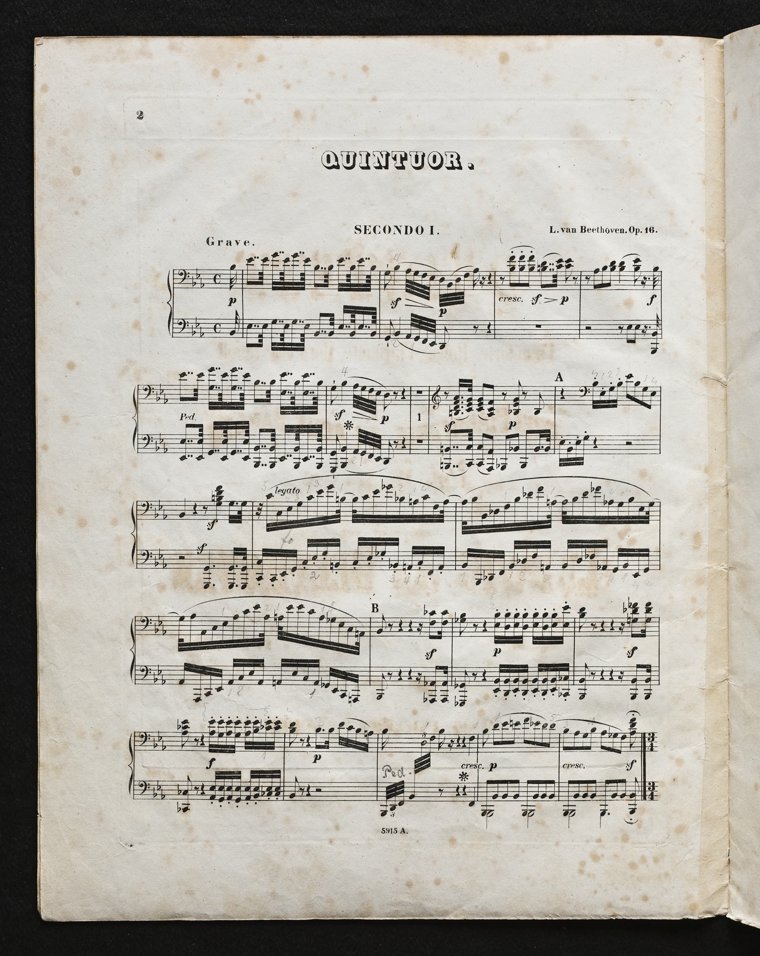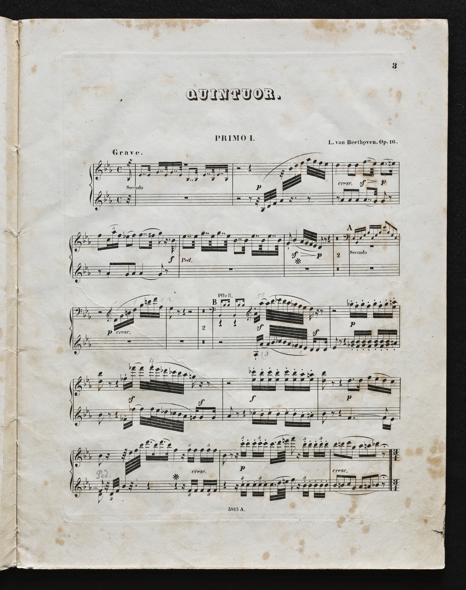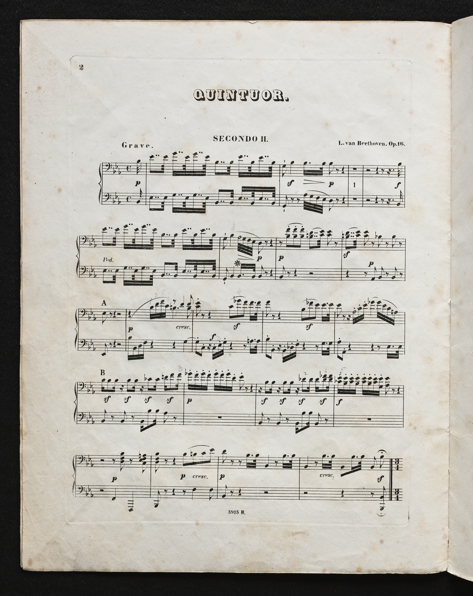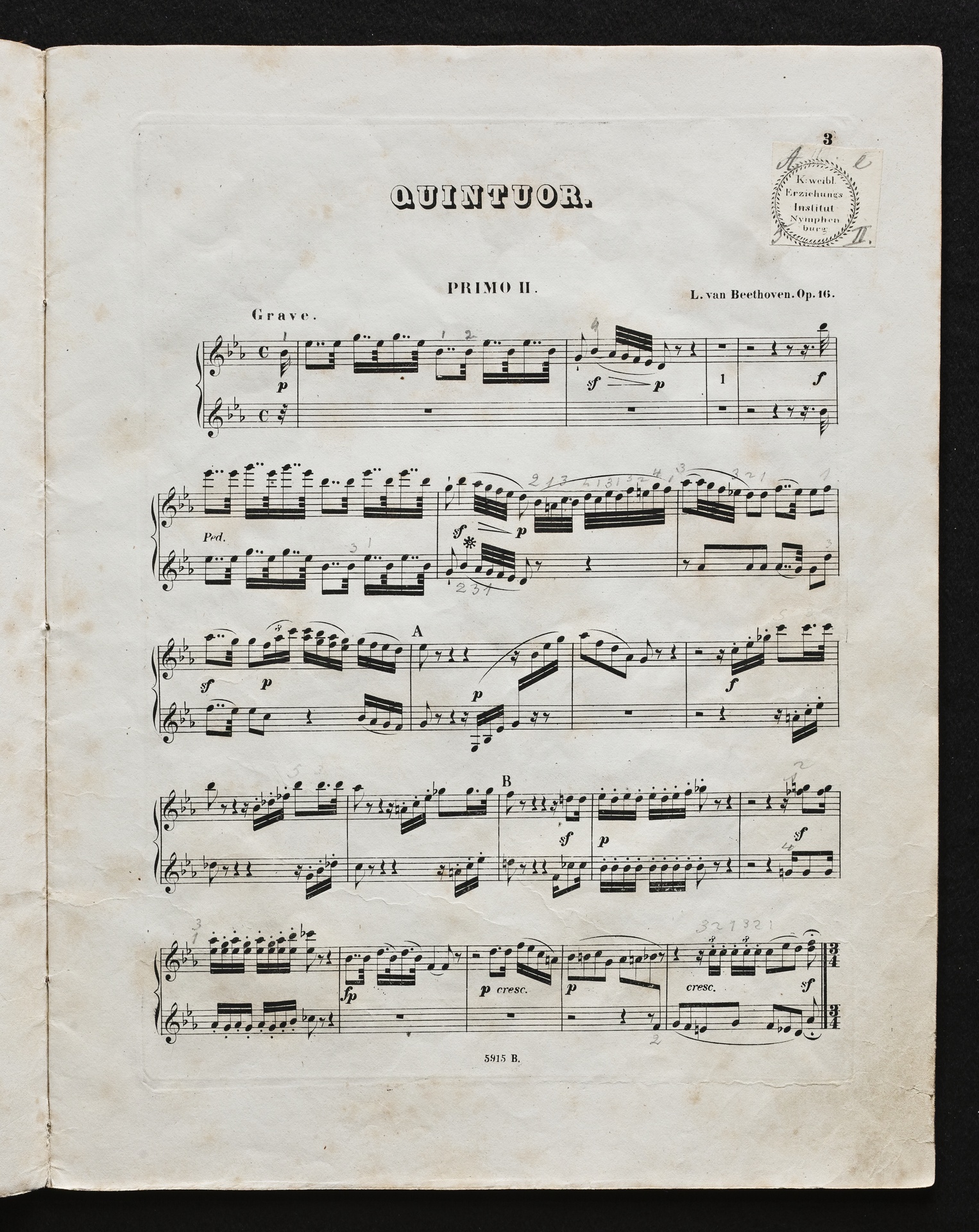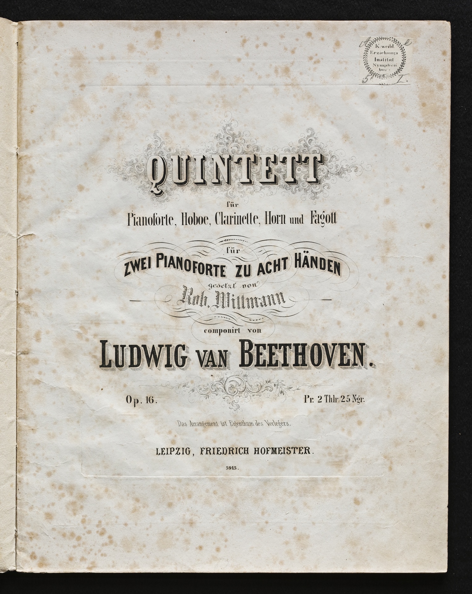 Ludwig van Beethoven, Quintett für Klavier, Oboe, Klarinette, Fagott und Horn (Es-Dur) op. 16, Bearbeitung für 2 Klaviere zu 8 Händen von Robert Wittmann, Stimmen, Hofmeister, 5912