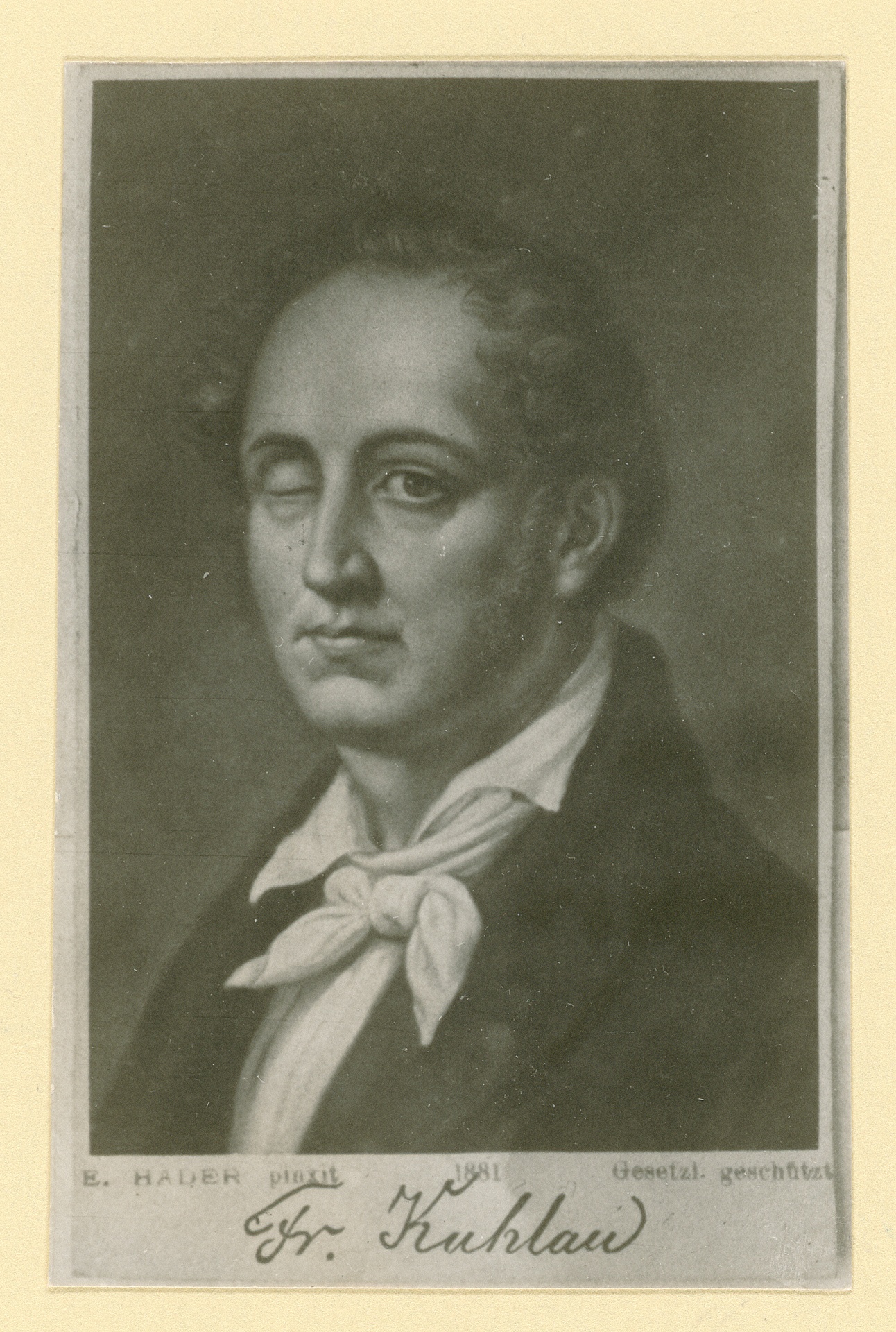 Friedrich Kuhlau (1786-1832) - anonyme Fotografie einer Reproduktion aus dem Jahr 1881 nach einem Gemälde von Ernst Hader, um 1920?