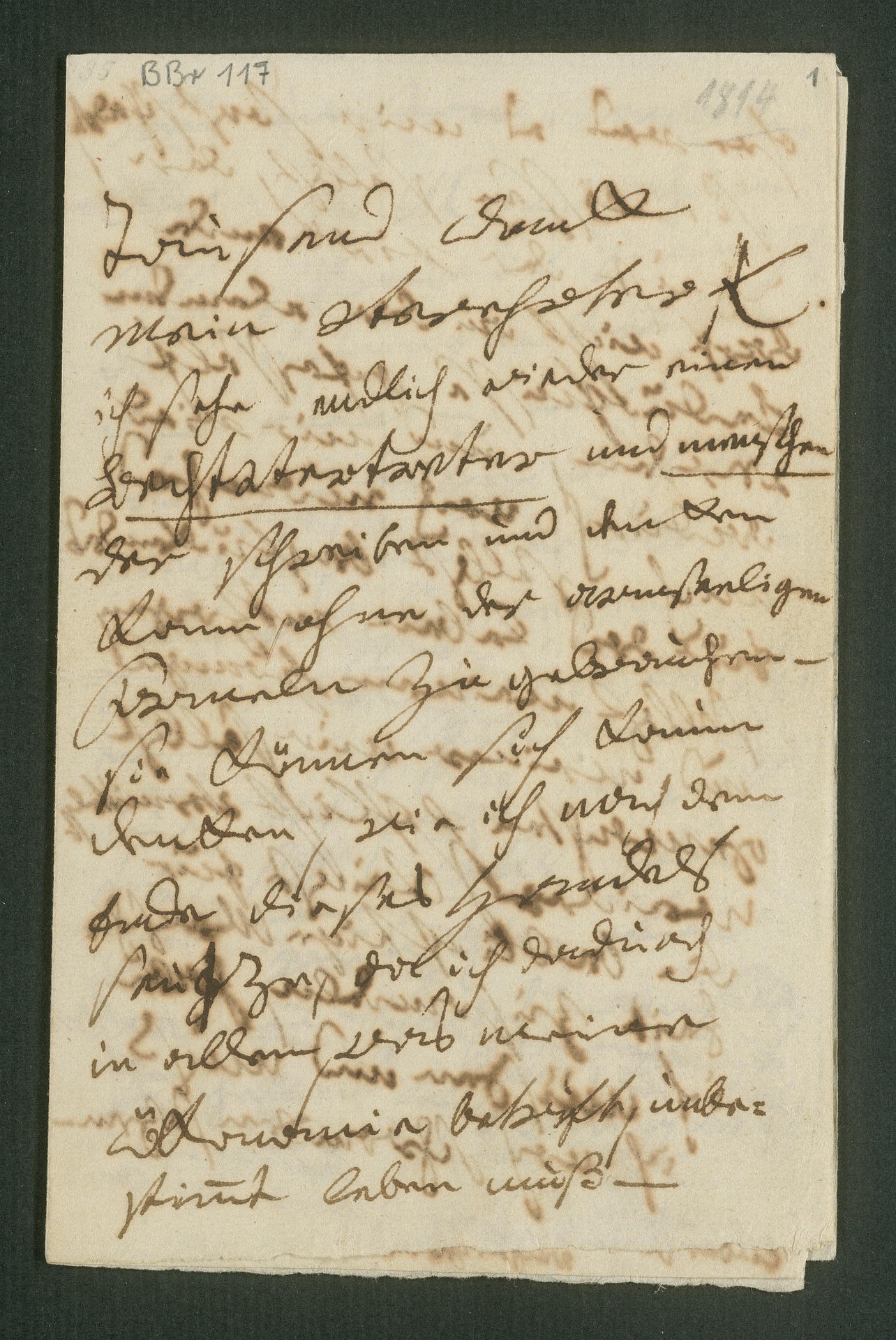 Beethoven dankt Kanka für dessen Bereitschaft, ihn im Rechtsstreit gegen die Erben des Fürsten Ferdinand Kinsky zu unterstützen. Beethoven bietet Kanka an, falls erforderlich, die notwendigen Unterlagen zu schicken. Außerdem möchte er ihm gerne einige seiner Musikalien schenken. Kanka war Landesadvokat in Prag und Kurator des minderjährigen Joseph Graf Kinsky. Die Fürsten Kinsky, Lobkowitz und Erzherzog Rudolph hatten 1809 einen Vertrag unterzeichnet, in dem sie Beethoven eine Leibrente bis Lebensende zusicherten. Nach dem Tod des Fürsten Kinsky stritt Beethoven mit der Familie um die Weiterzahlung des Kinskyschen Anteils an der Rente. Die Erben stimmten der Fortzahlung erst 1815 zu. (J.R.)