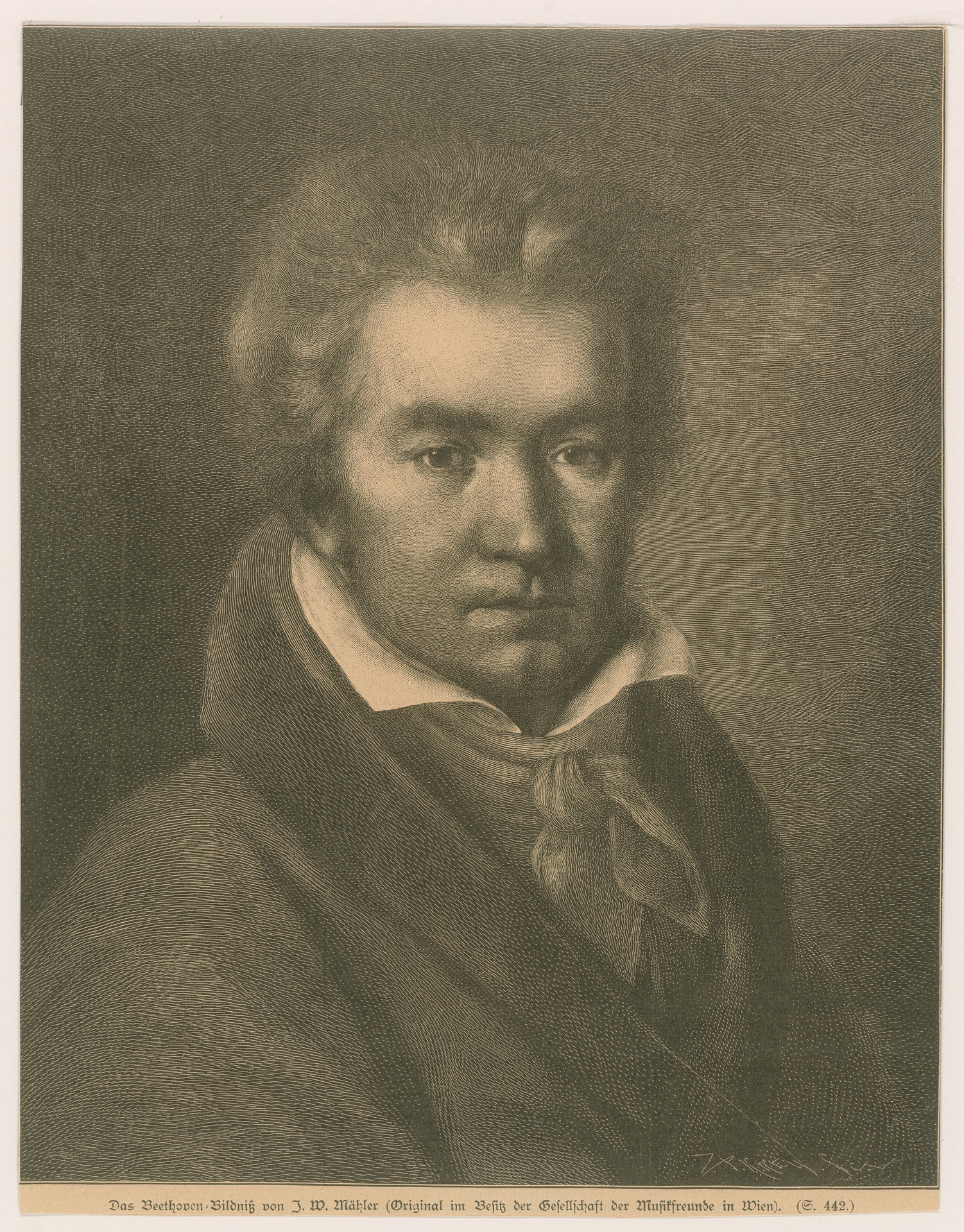 Um das Jahr 1815 schuf Mähler eine Serie von Bildnissen zeitgenössischer Wiener Komponisten, "welche sich sämtlich durch einen kräftigen Pinsel, sprechende Ähnlichkeit und unverkennbaren Seelenausdruck rühmlichst auszeichnen", wie es in der "Allgemeinen Musikzeitung" vom August 1815 heißt. Zu dieser Serie gehört auch ein Brustbild Beethovens, von dem der Maler mehrere Versionen schuf. Mähler scheint dieses Portrait besonders geschätzt zu haben, denn er behielt eine Fassung des Bildes bis zu seinem Tod in seinem Besitz. (S.B.)