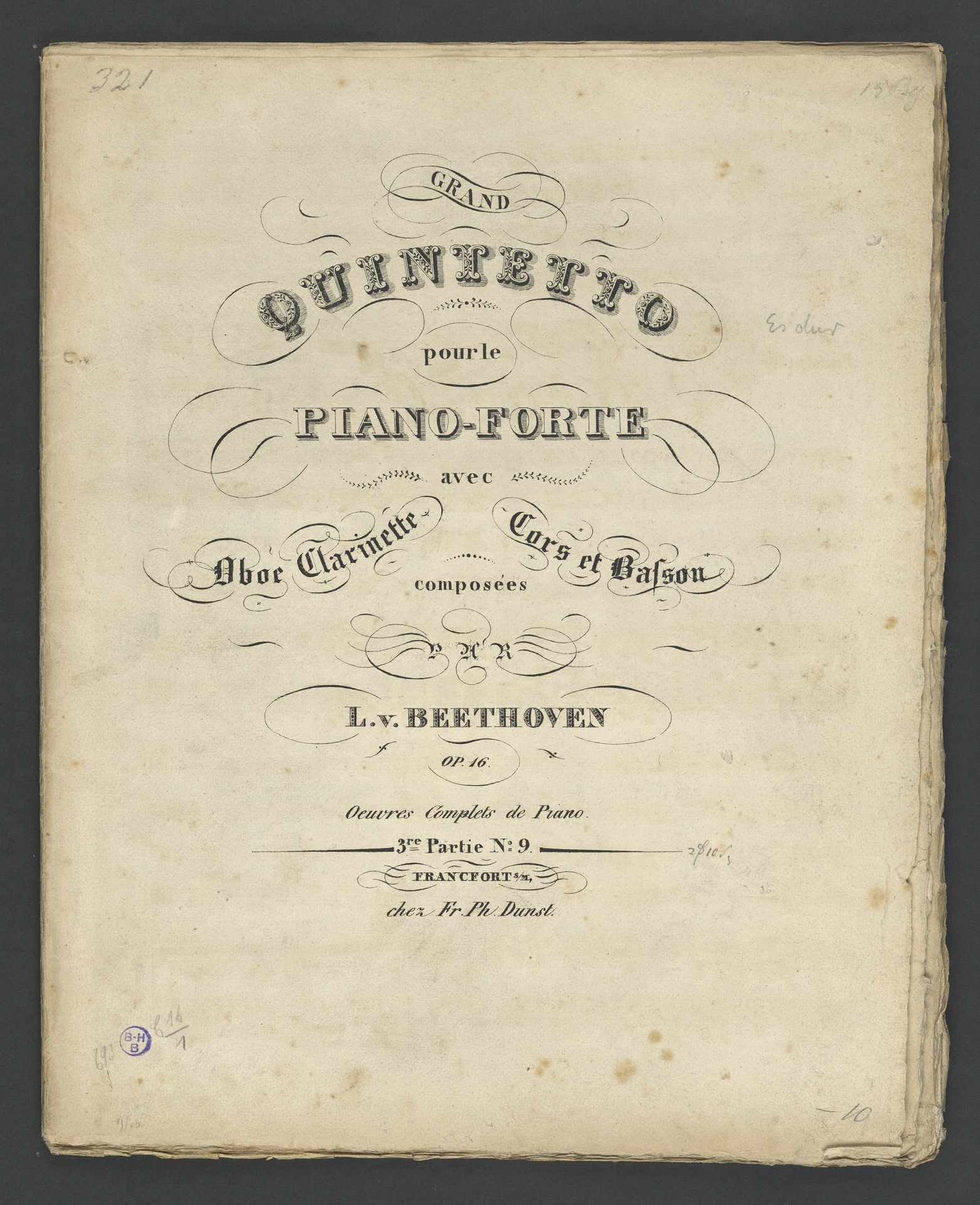 Ludwig van Beethoven, Quintett für Klavier, Oboe, Klarinette, Fagott und Horn (Es-Dur) op. 16, Klavierpartitur, Stimmen, Dunst, 253