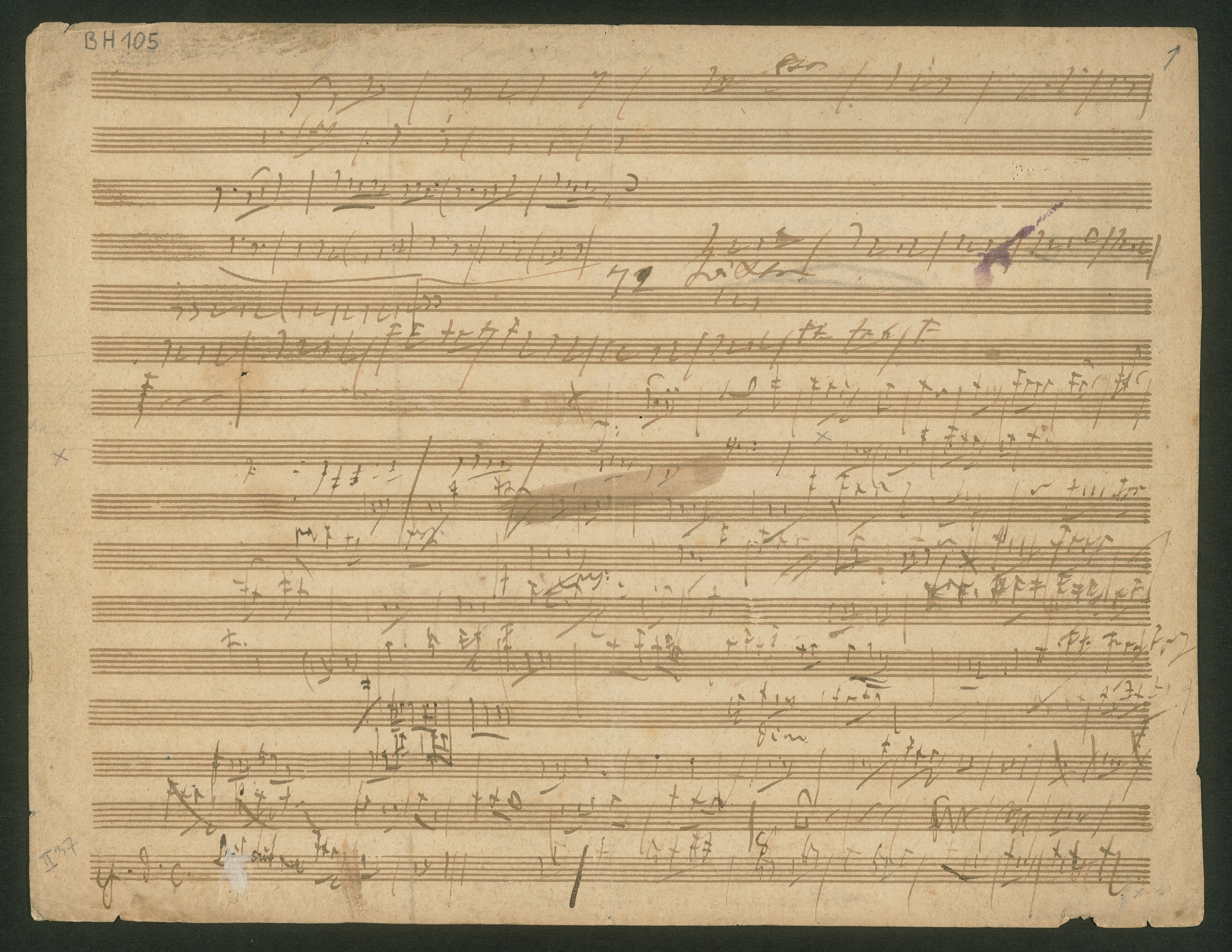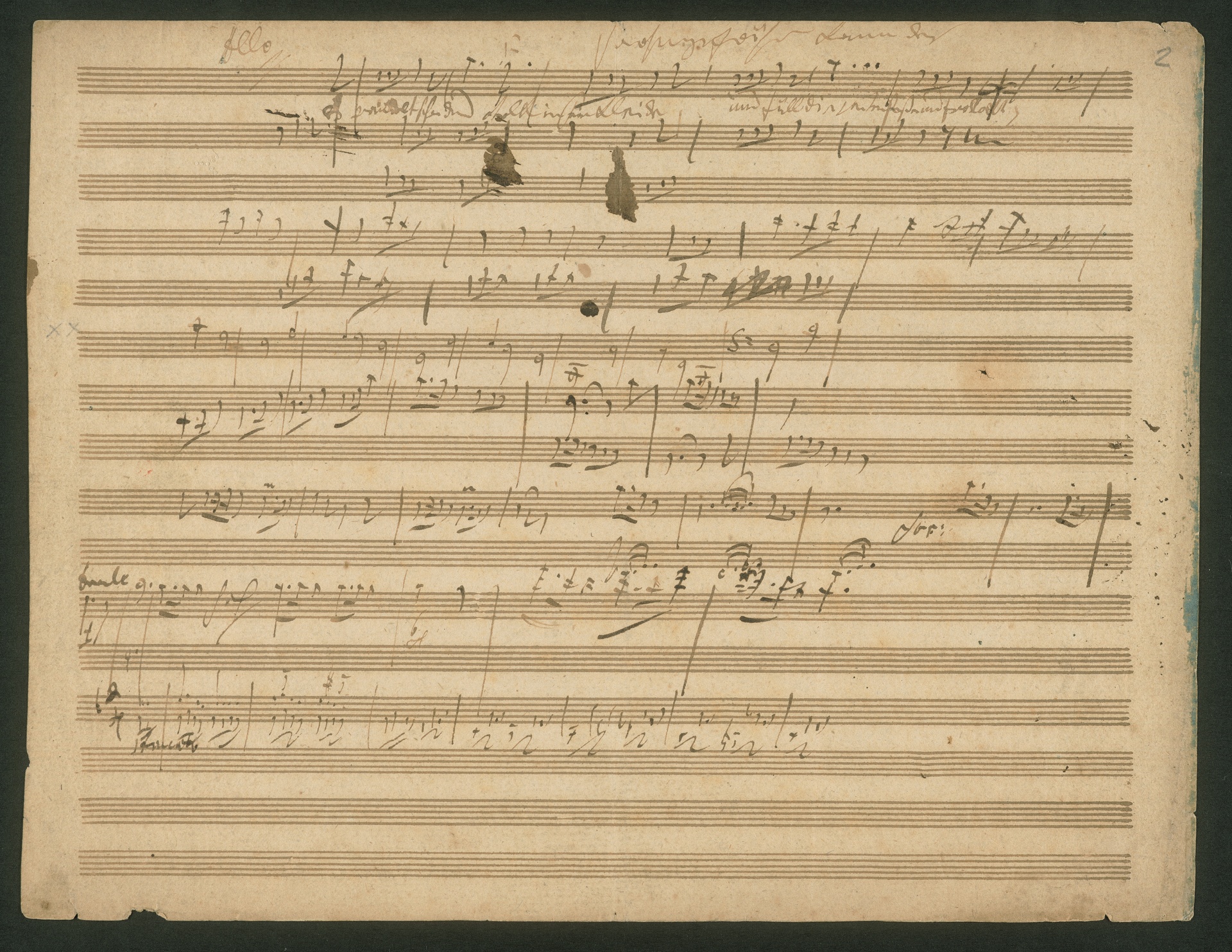 Ludwig van Beethoven, Skizzenblatt zu den Ruinen von Athen op. 113 sowie zur Sinfonie Nr. 7 op. 92, 1. Satz, Autograph
