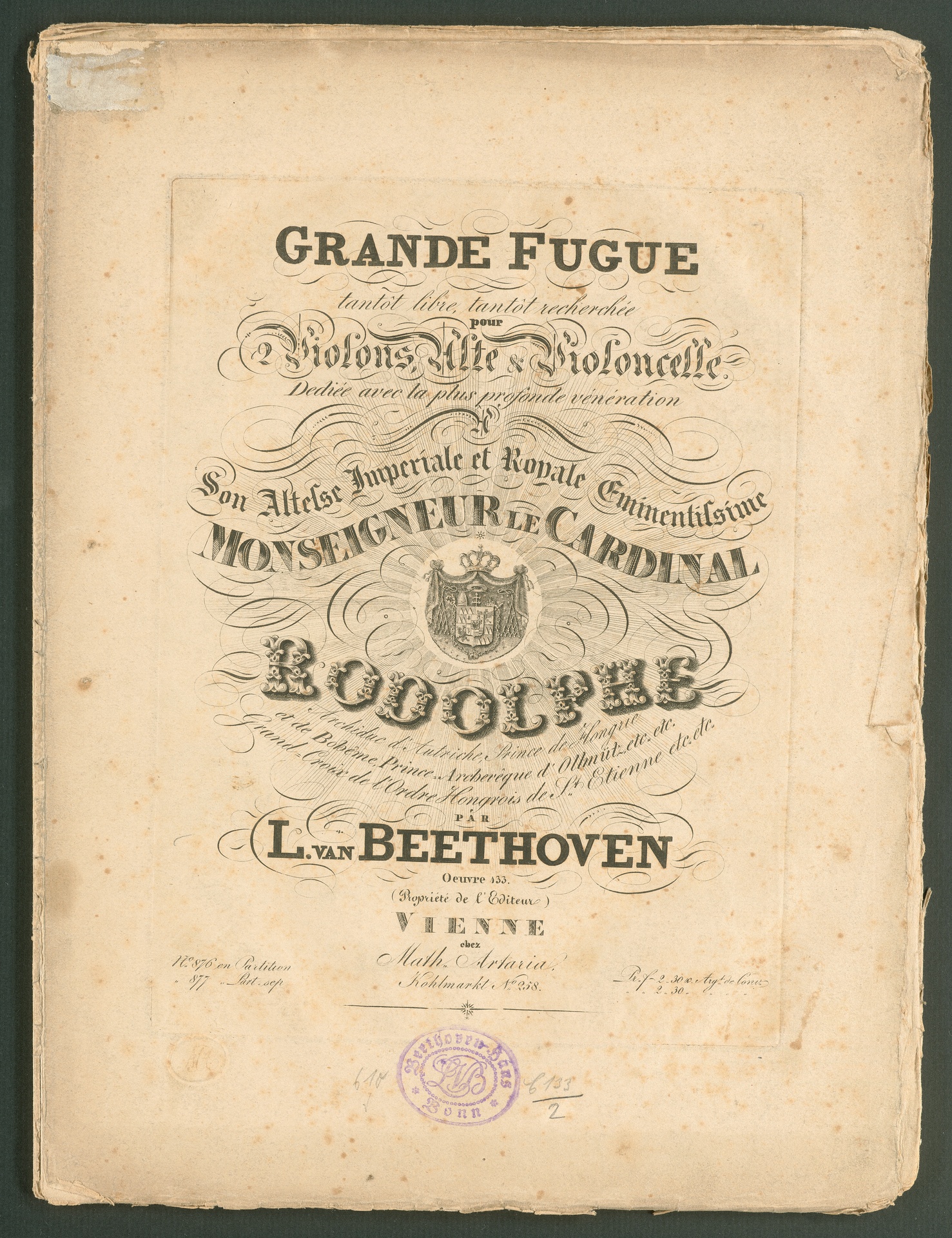 Ludwig van Beethoven, Fuge für 2 Violinen, Viola, Violoncello (B-Dur) op. 133, Stimmen, Artaria, 877