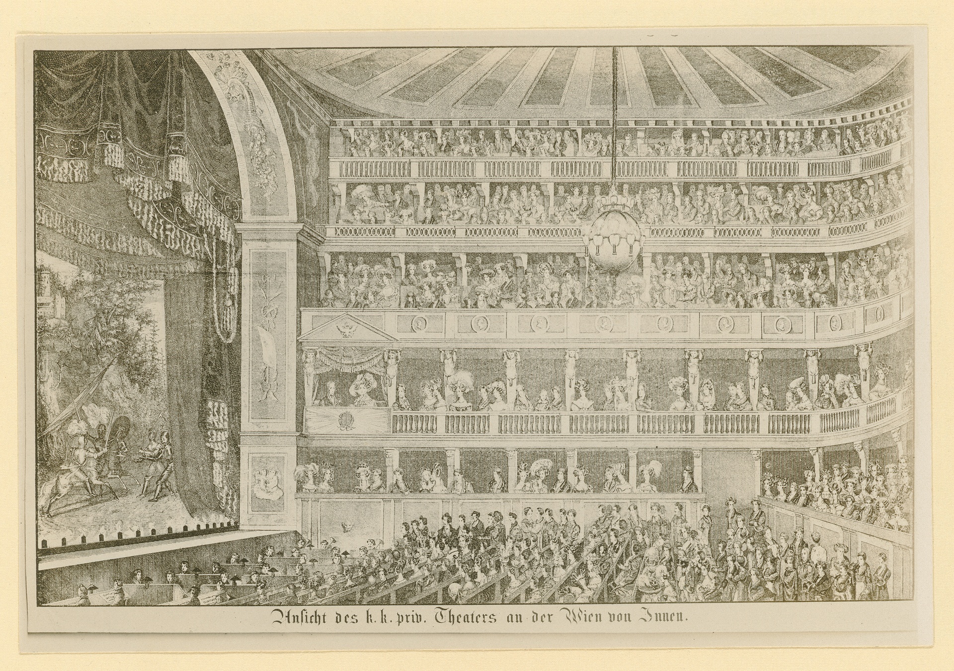 Innenansicht des Theaters an der Wien, um 1840 - Fotografie eines anonymen Holzstichs aus dem 19. Jahrhundert