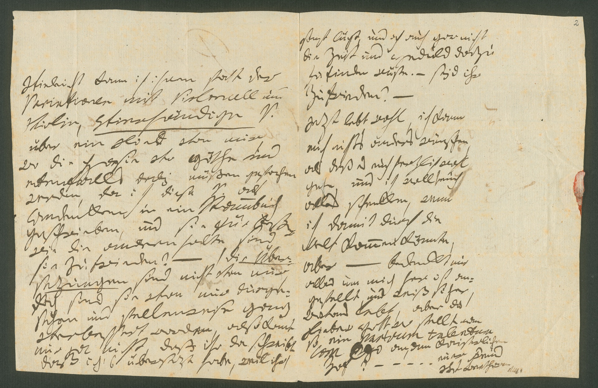 Schließlich klagt Beethoven über seine unsichere Position als freischaffender Künstler: "bedenkt nur alles um mich her ist angestellt, und weiß sicher, wovons lebt, aber du Lieber Gott, wo stellt man so ein parvum talentum com ego an, am kaiserlichen Hof?---". (J.R.)
