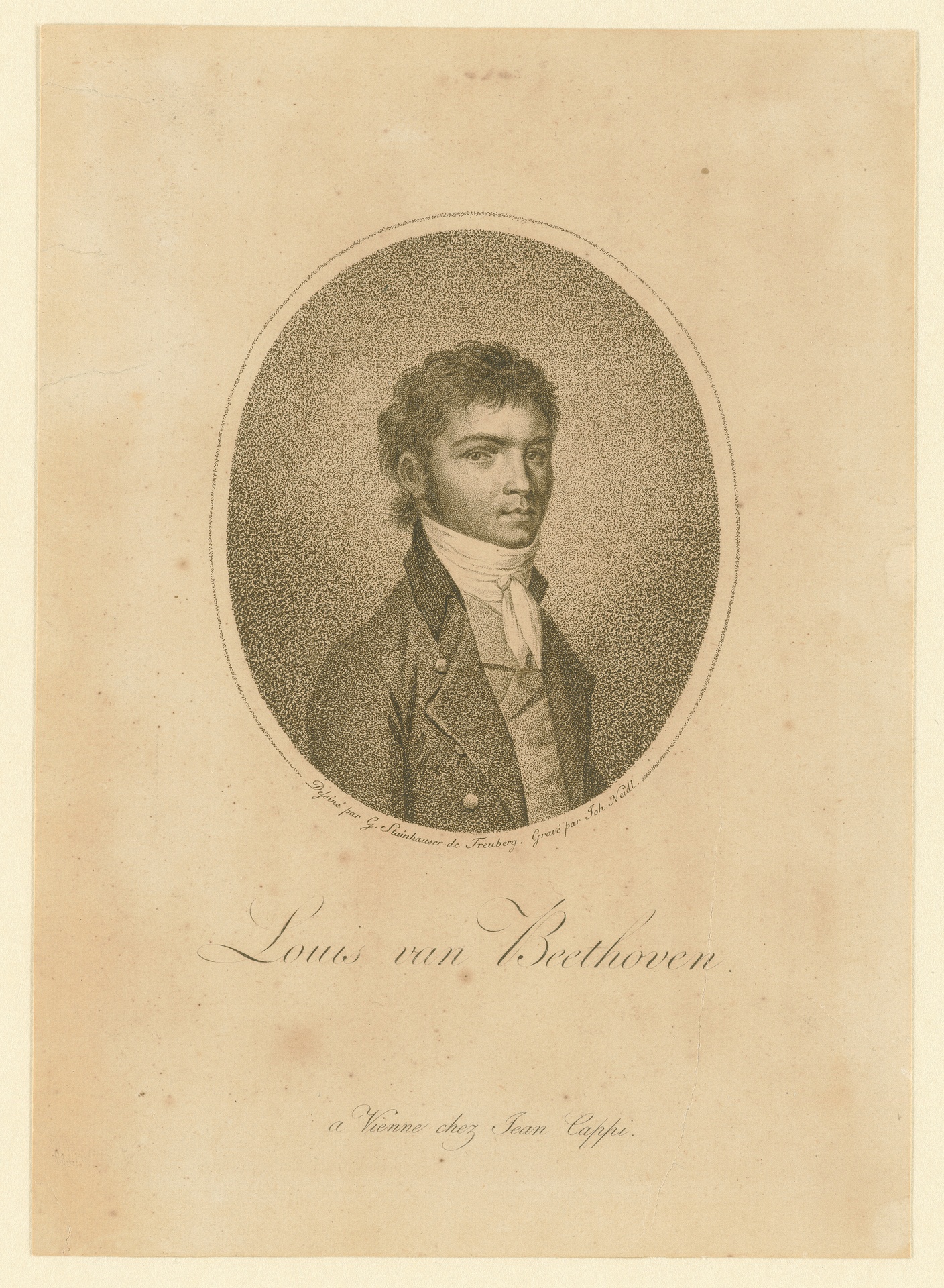 Ludwig van Beethoven - Stich von Johann Joseph Neidl nach einer Zeichnung von Gandolph Ernst Stainhauser von Treuberg aus dem Jahr 1801, erschienen bei Johann Cappi, Wien, 1801