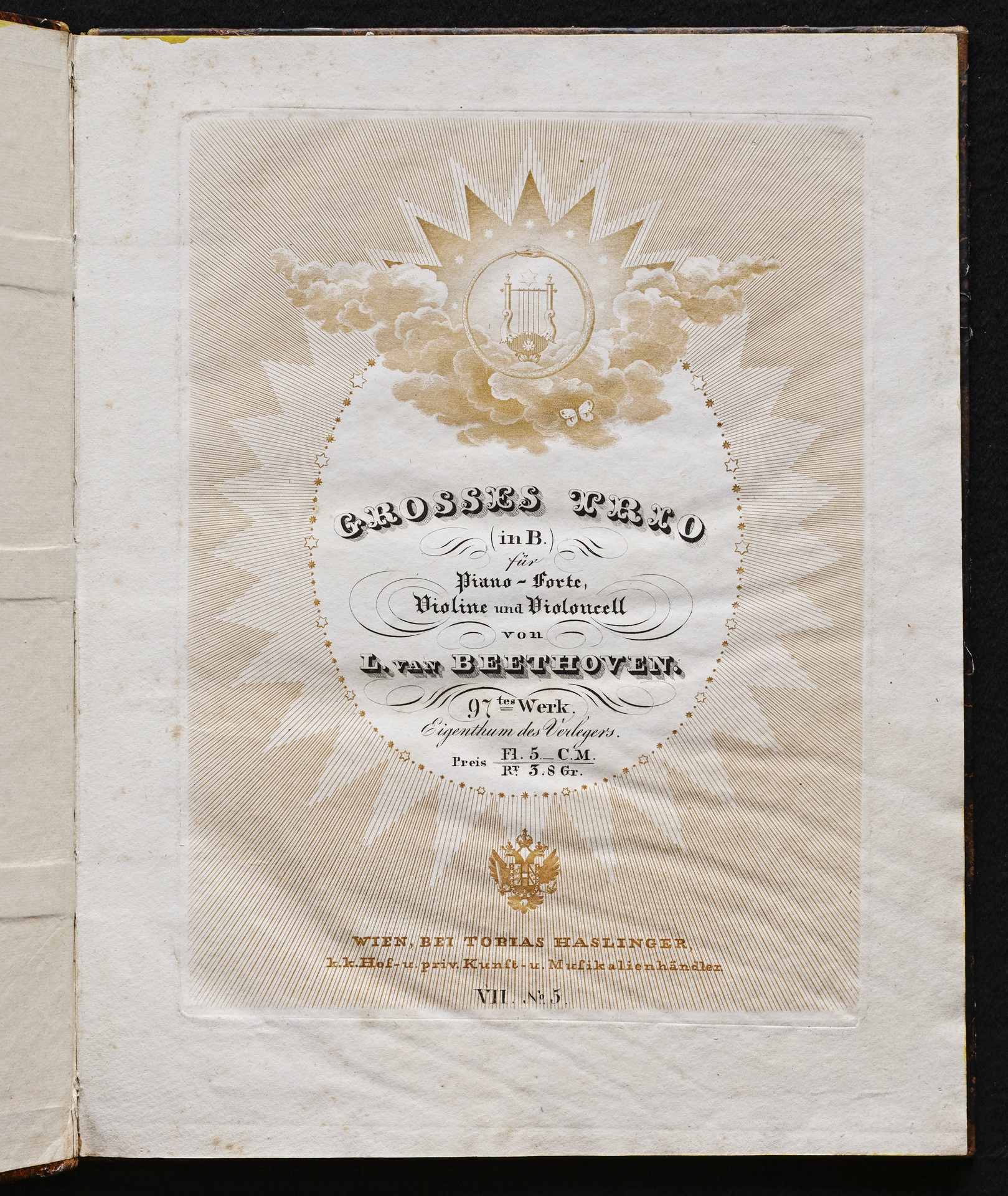 Ludwig van Beethoven, Trio für Klavier, Violine, Violoncello (B-Dur) op. 97, Klavierpartitur, Stimmen, Haslinger, 7,4