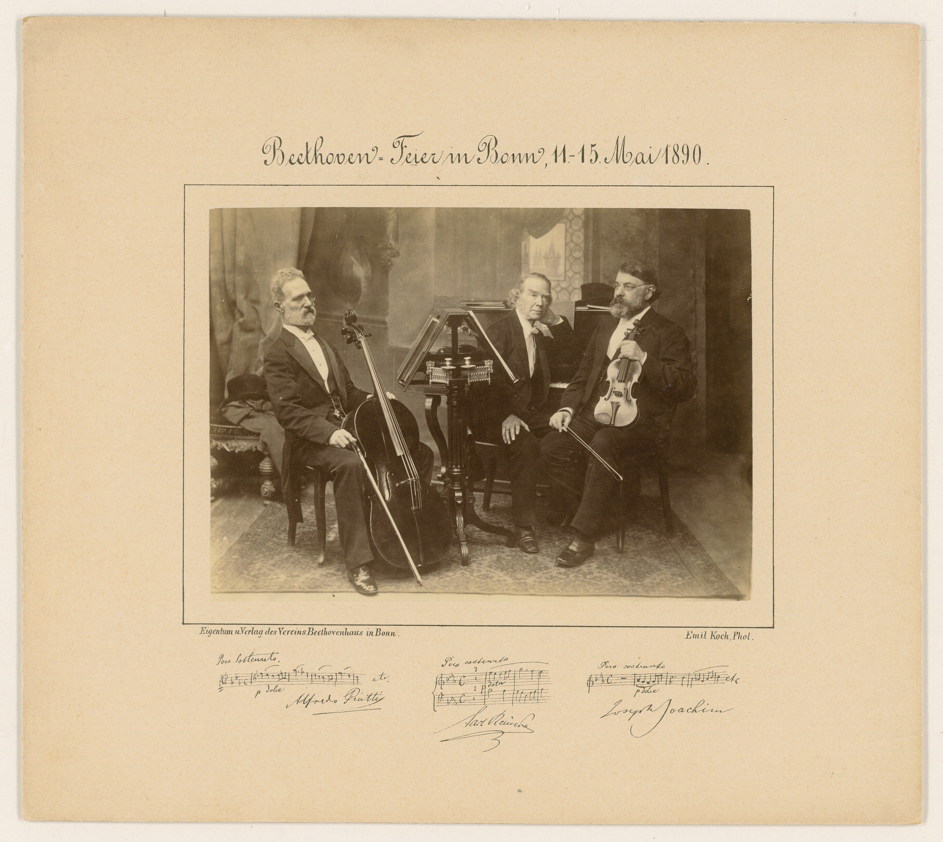 Alfredo Piatti (1822-1901), Carl Reinecke (1824-1910) und Joseph Joachim (1831-1907) bei der Bonner Beethoven-Feier 1890 - Fotografie von Emil Koch