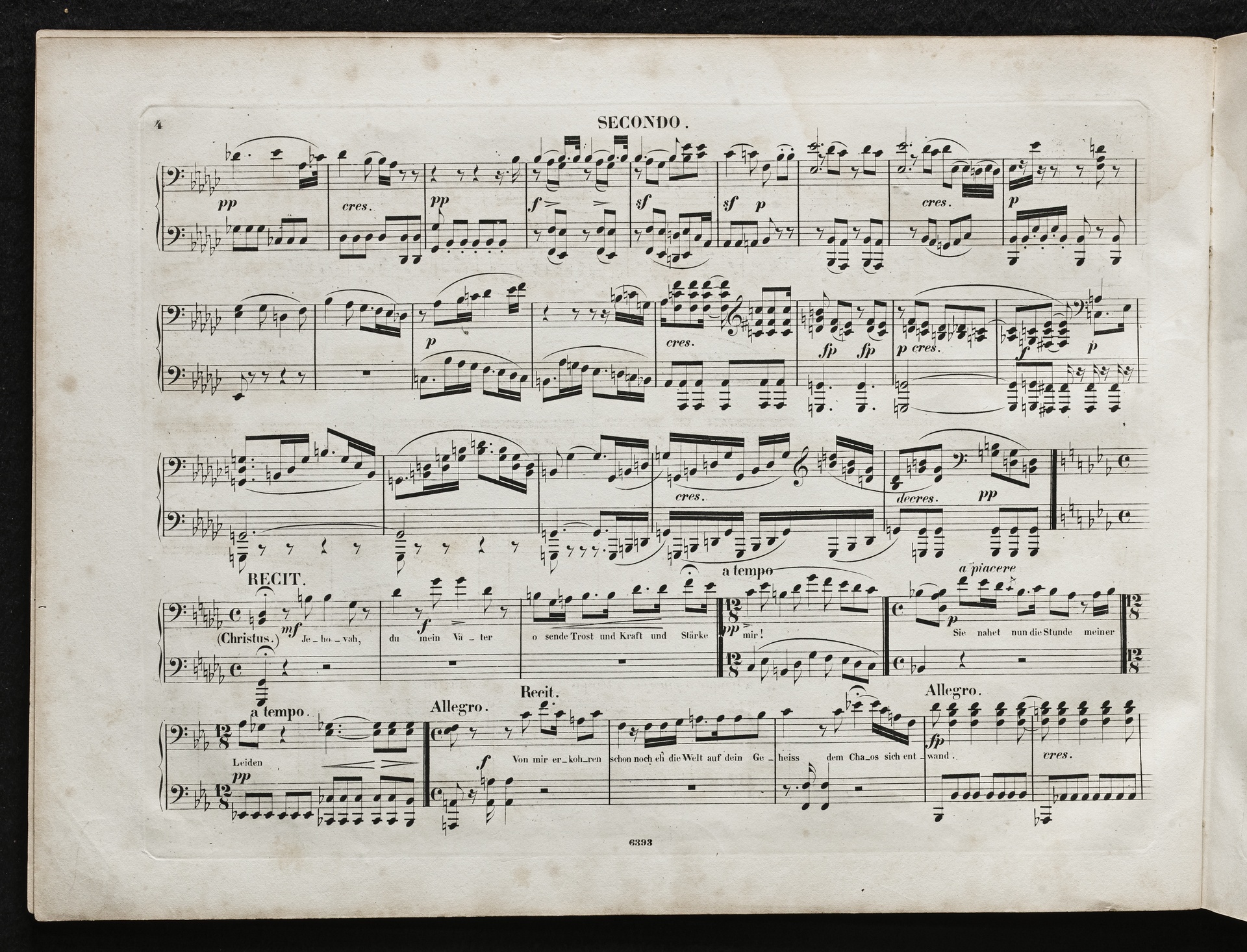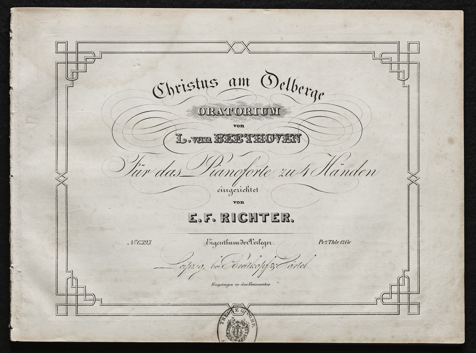 Ludwig van Beethoven, "Christus am Ölberge", Oratorium für drei Solostimmen, Chor und Orchester op. 85, Bearbeitung für Klavier zu 4 Händen von Ernst Friedrich Eduard Richter, Breitkopf & Härtel, 6393