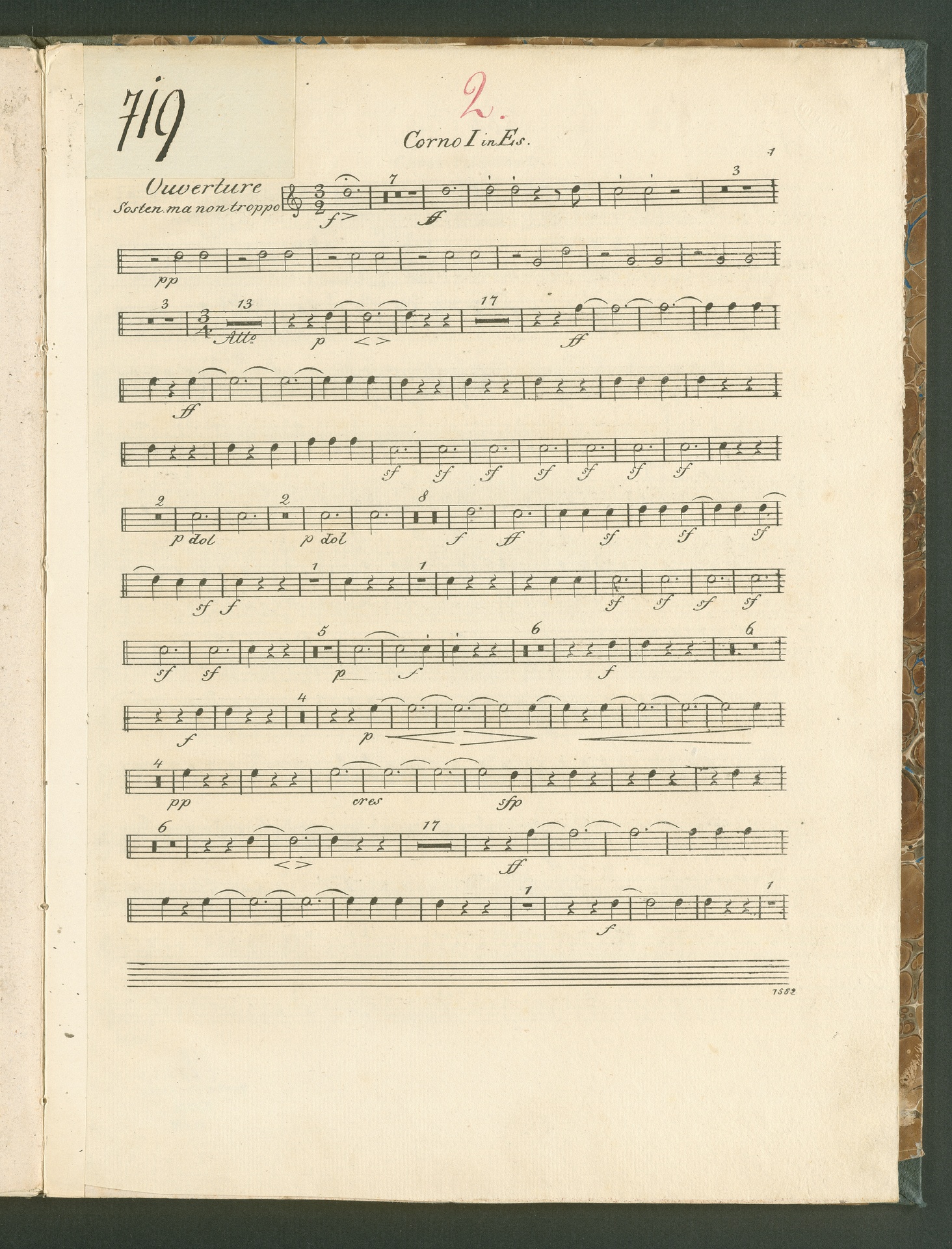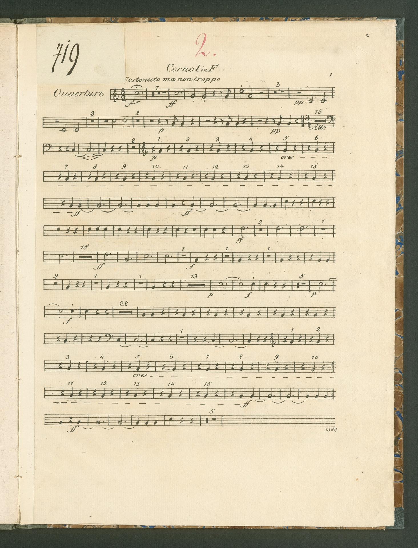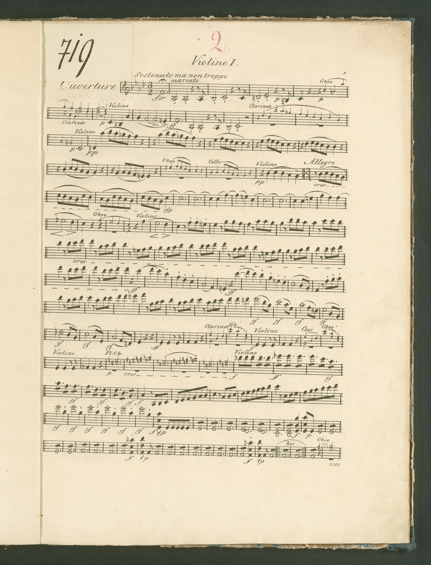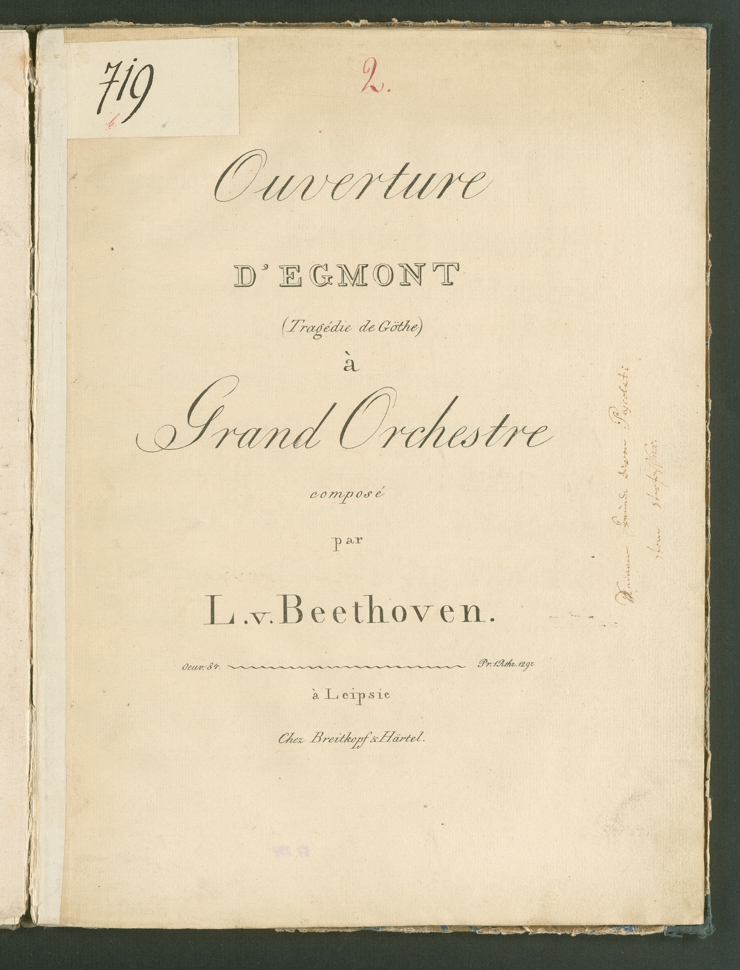 Ludwig van Beethoven, Musik zu Johann Wolfgang von Goethes Trauerspiel "Egmont" op. 84, Ouvertüre (f-Moll), Stimmen, Breitkopf und Härtel, 1582, mit handschriftlichen Eintragungen Beethovens