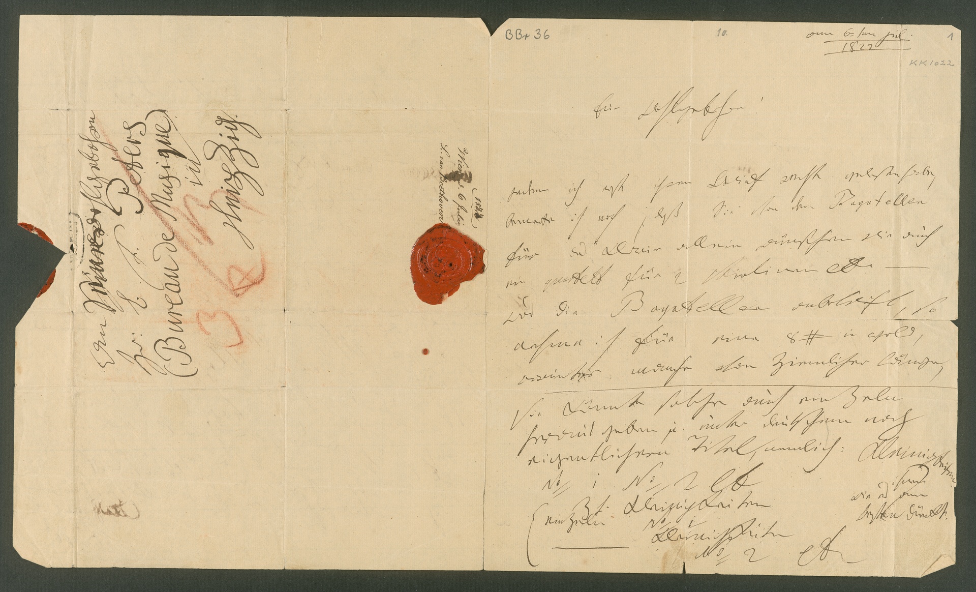 Ludwig van Beethoven, Brief an Carl Friedrich Peters in Leipzig, Wien, 6. Juli 1822, Autograph