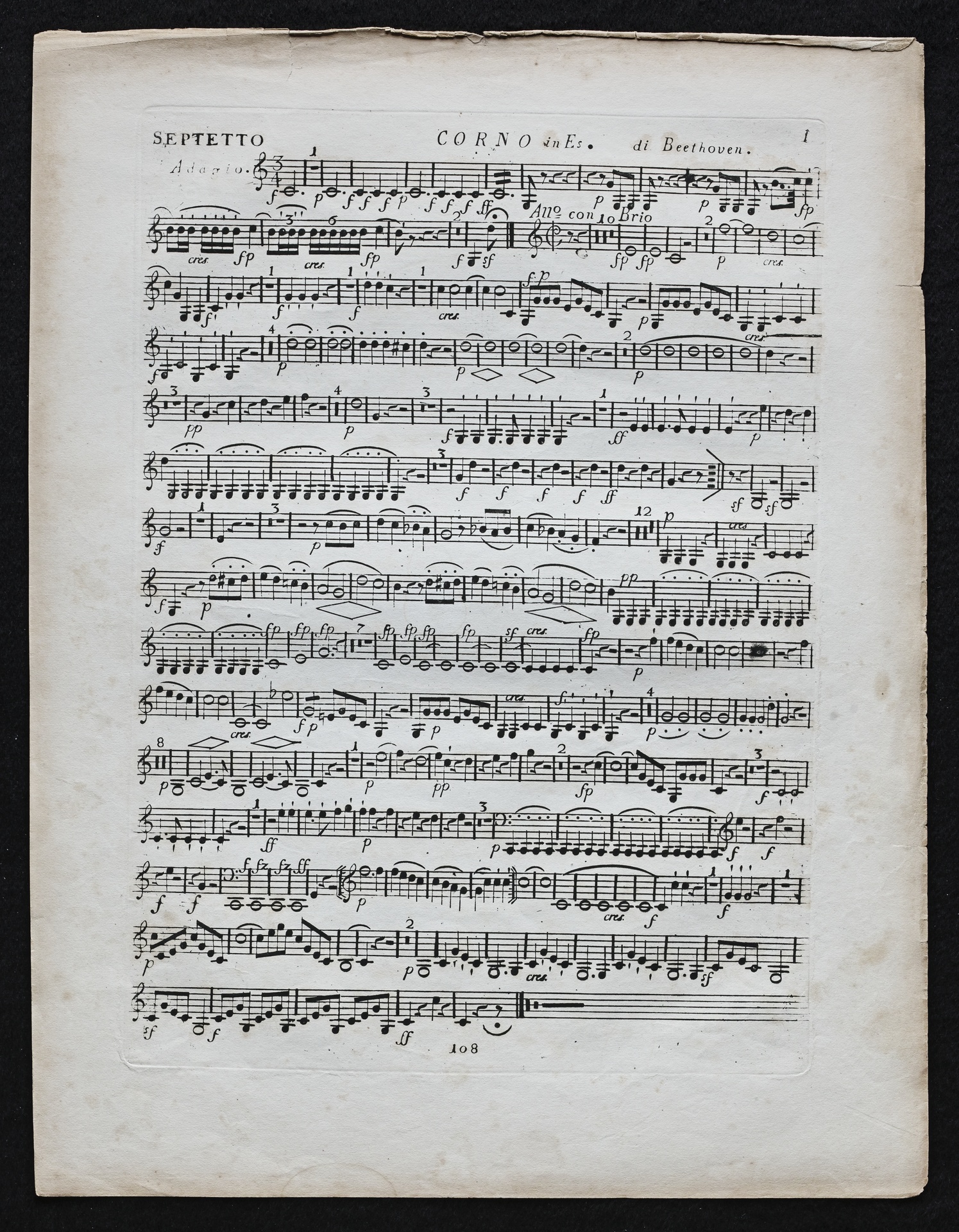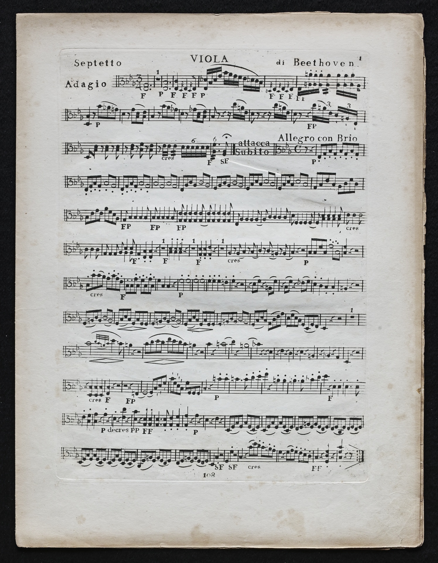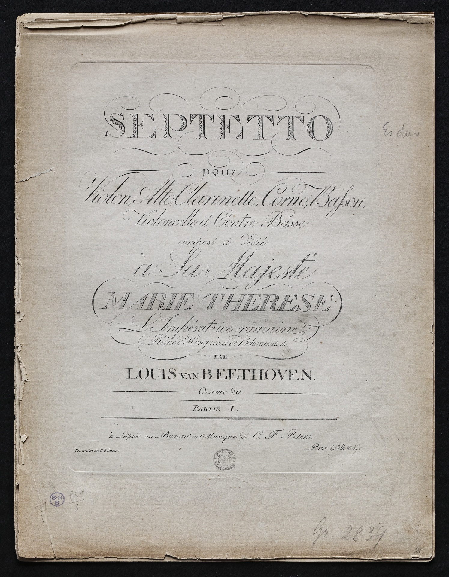 Ludwig van Beethoven, Septett für Violine, Viola, Klarinette, Horn, Fagott, Violoncello, Kontrabass (Es-Dur) op. 20, Stimmen, Peters, 108