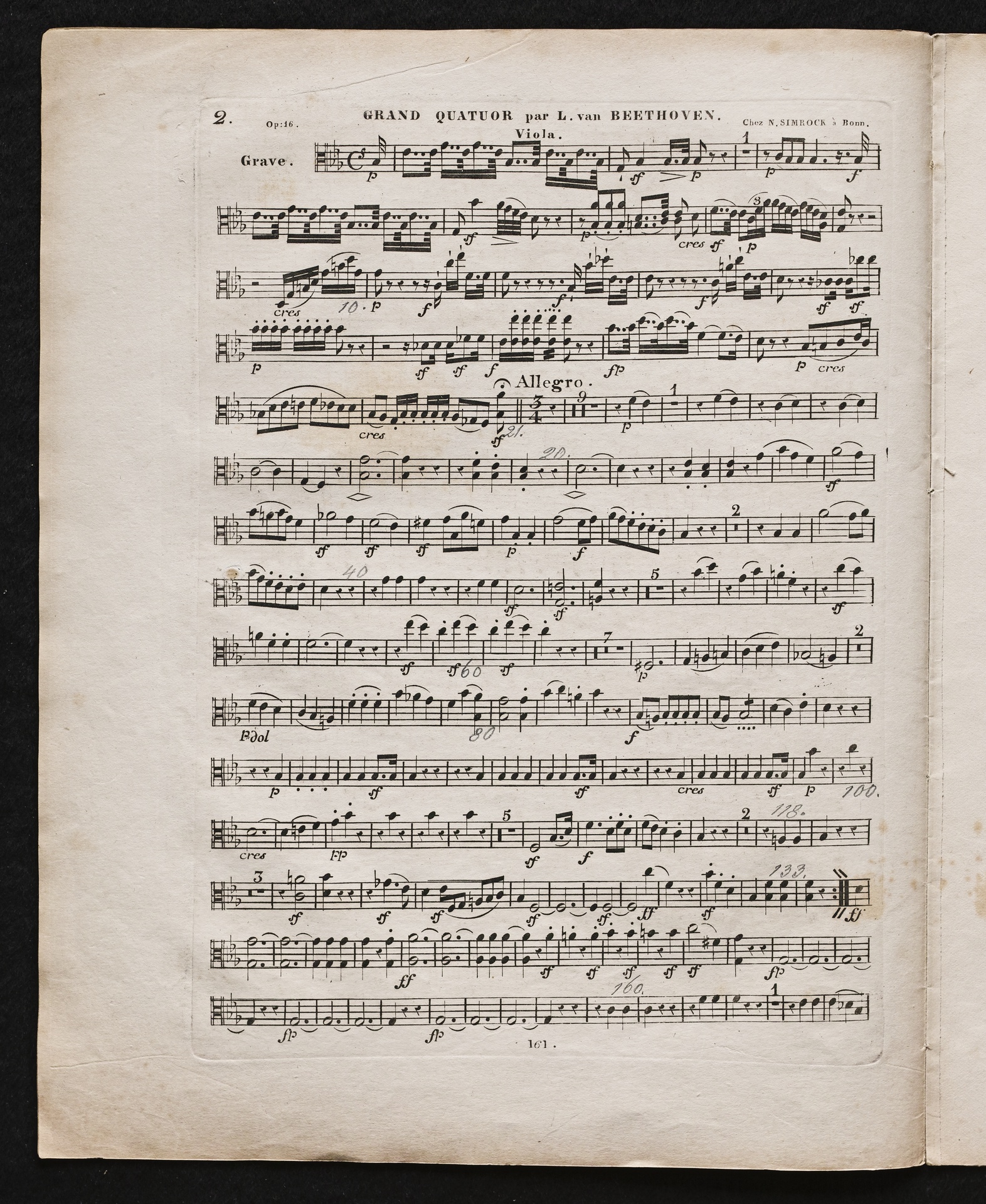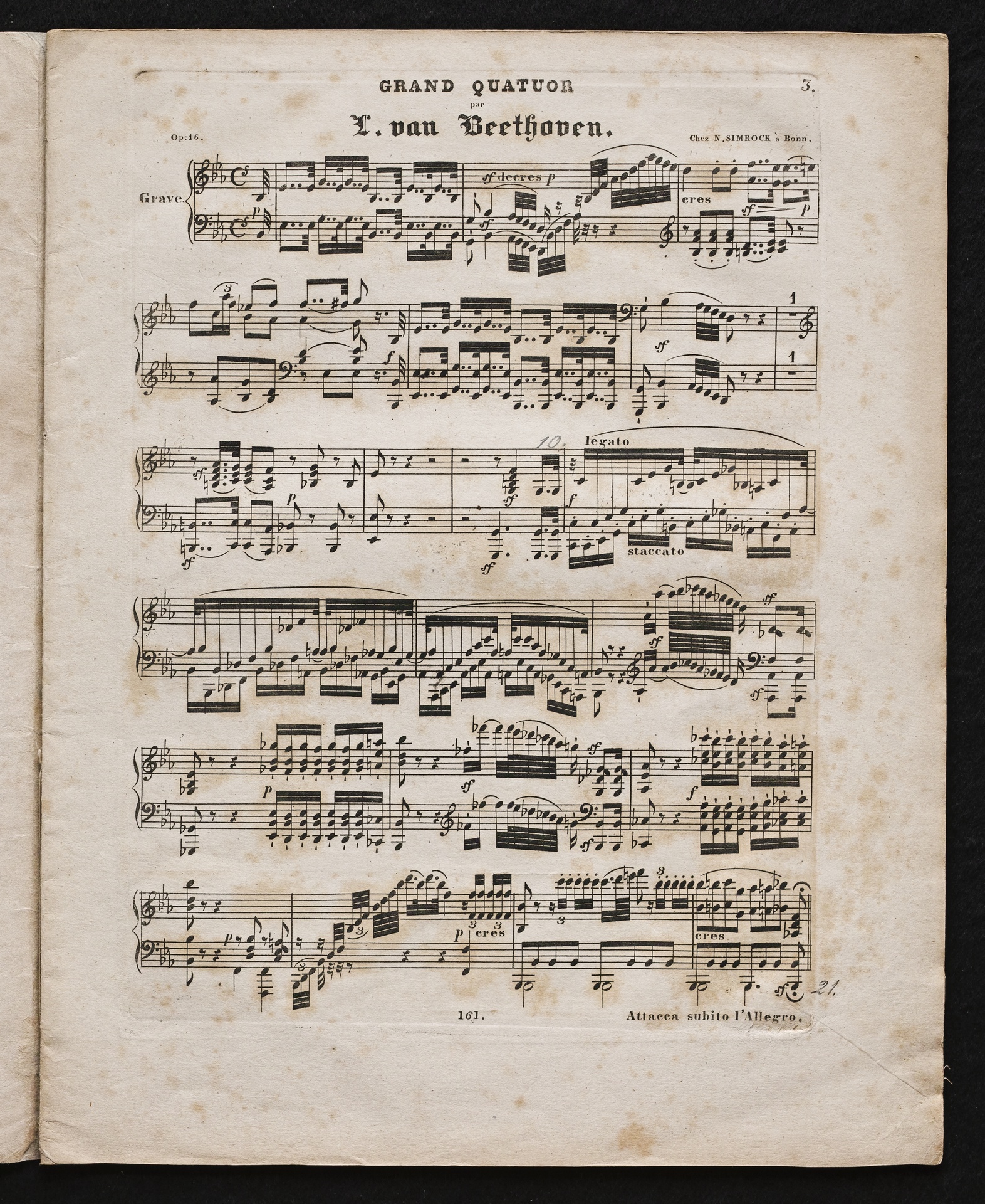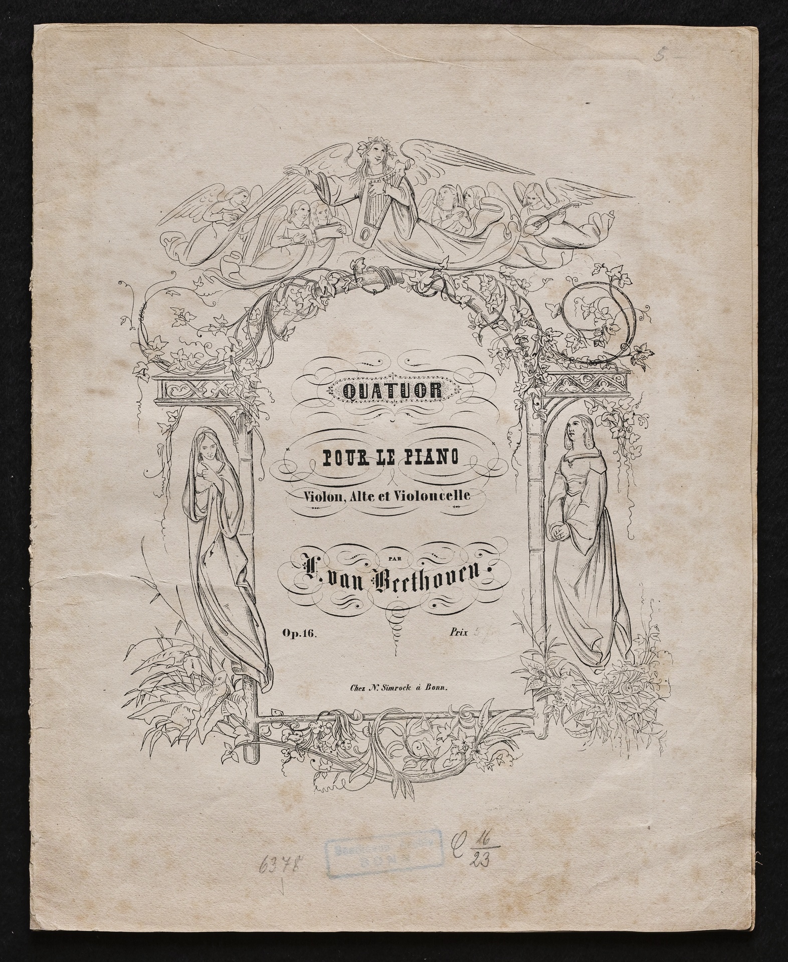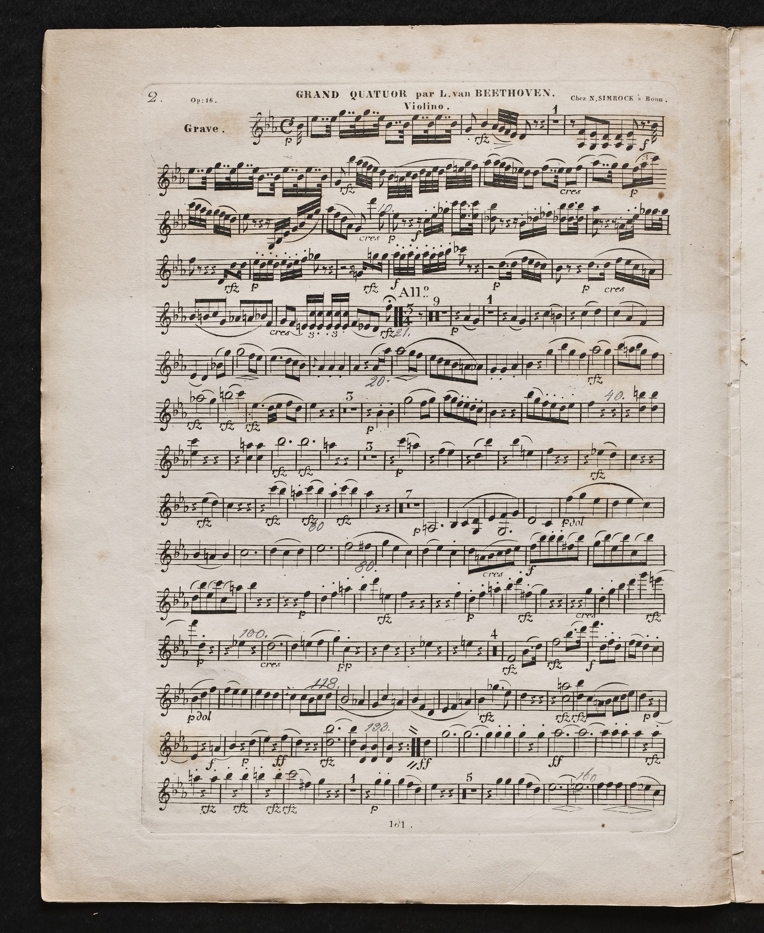 Ludwig van Beethoven, Quintett für Klavier, Oboe, Klarinette, Fagott und Horn (Es-Dur) op. 16, Fassung für Klavier, Violine, Viola, Violoncello, Stimmen, Simrock, 161