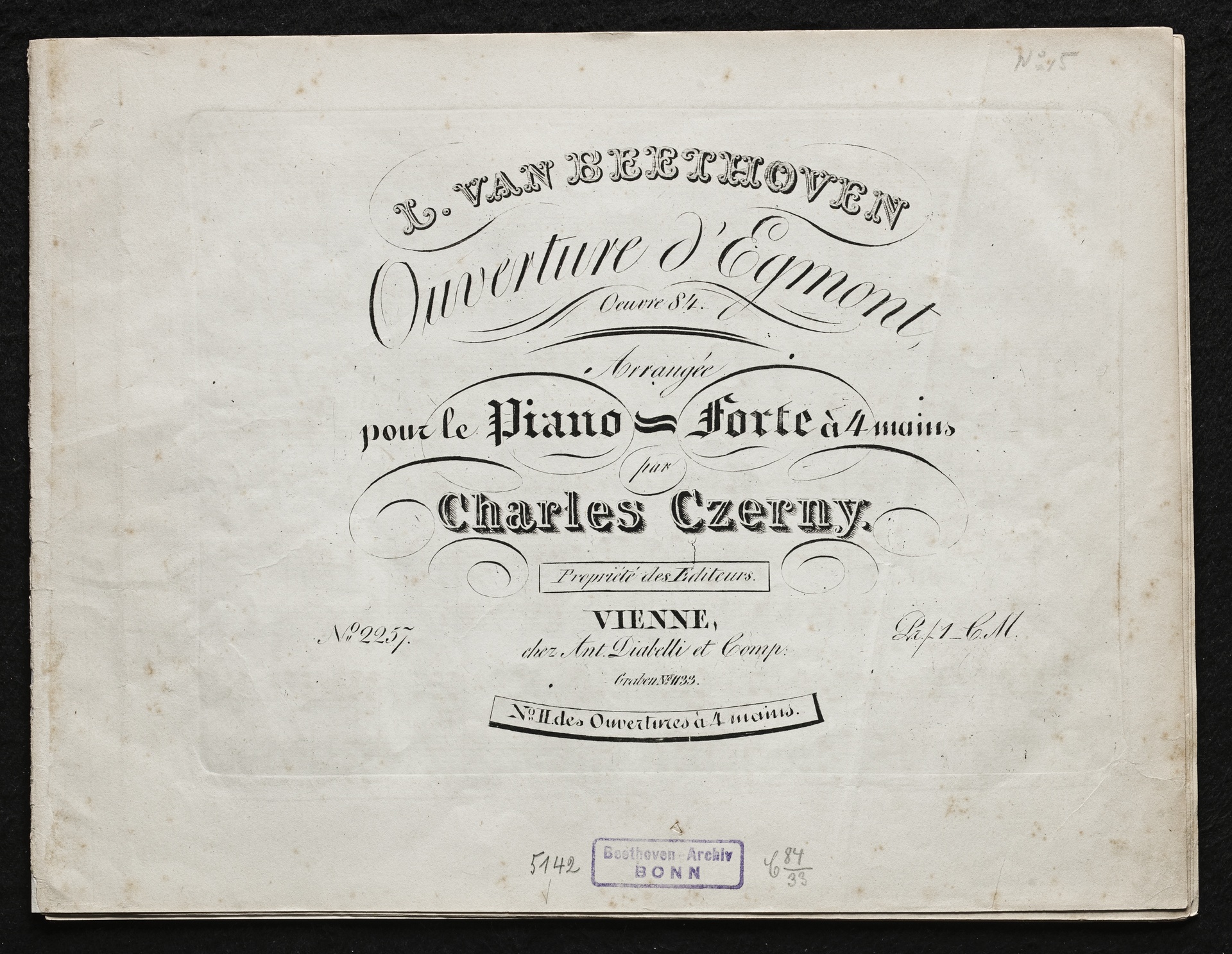 Ludwig van Beethoven, Musik zu Johann Wolfgang von Goethes Trauerspiel "Egmont" op. 84, Ouvertüre (f-Moll), Bearbeitung für Klavier zu 4 Händen von Carl Czerny, Diabelli, 2257