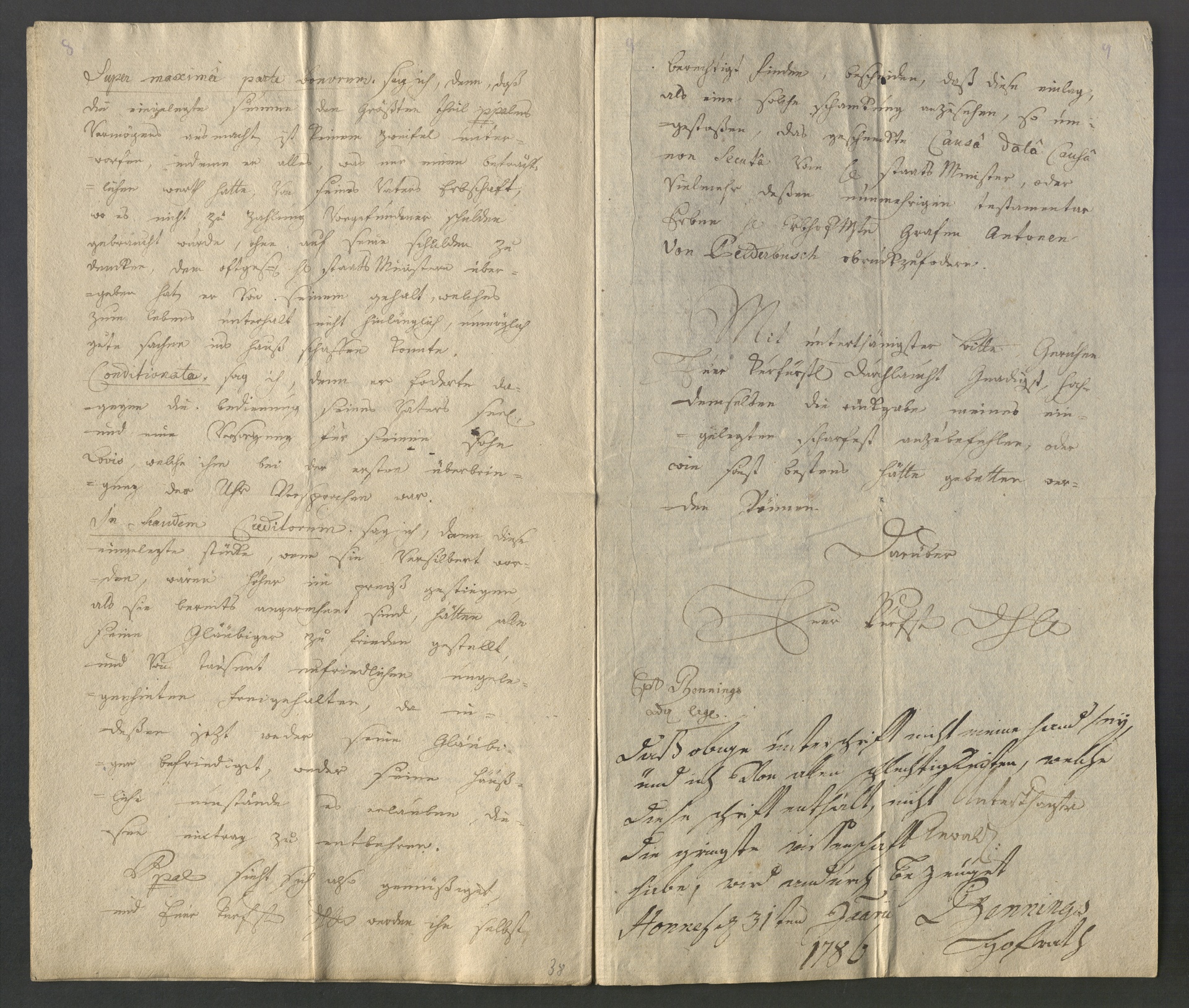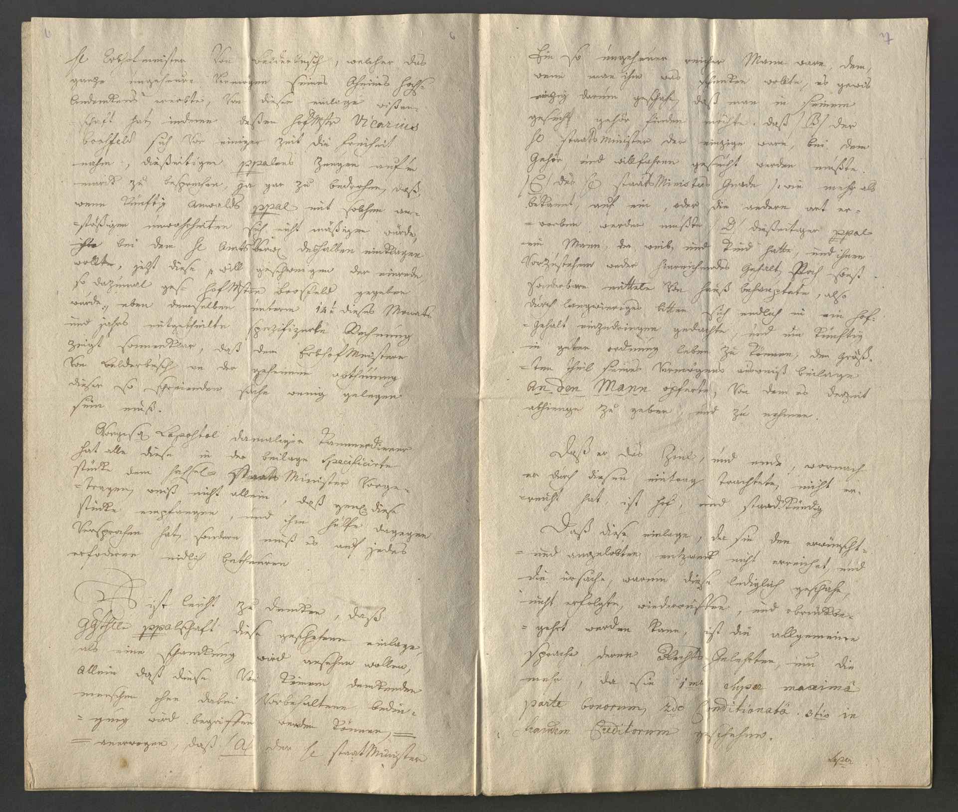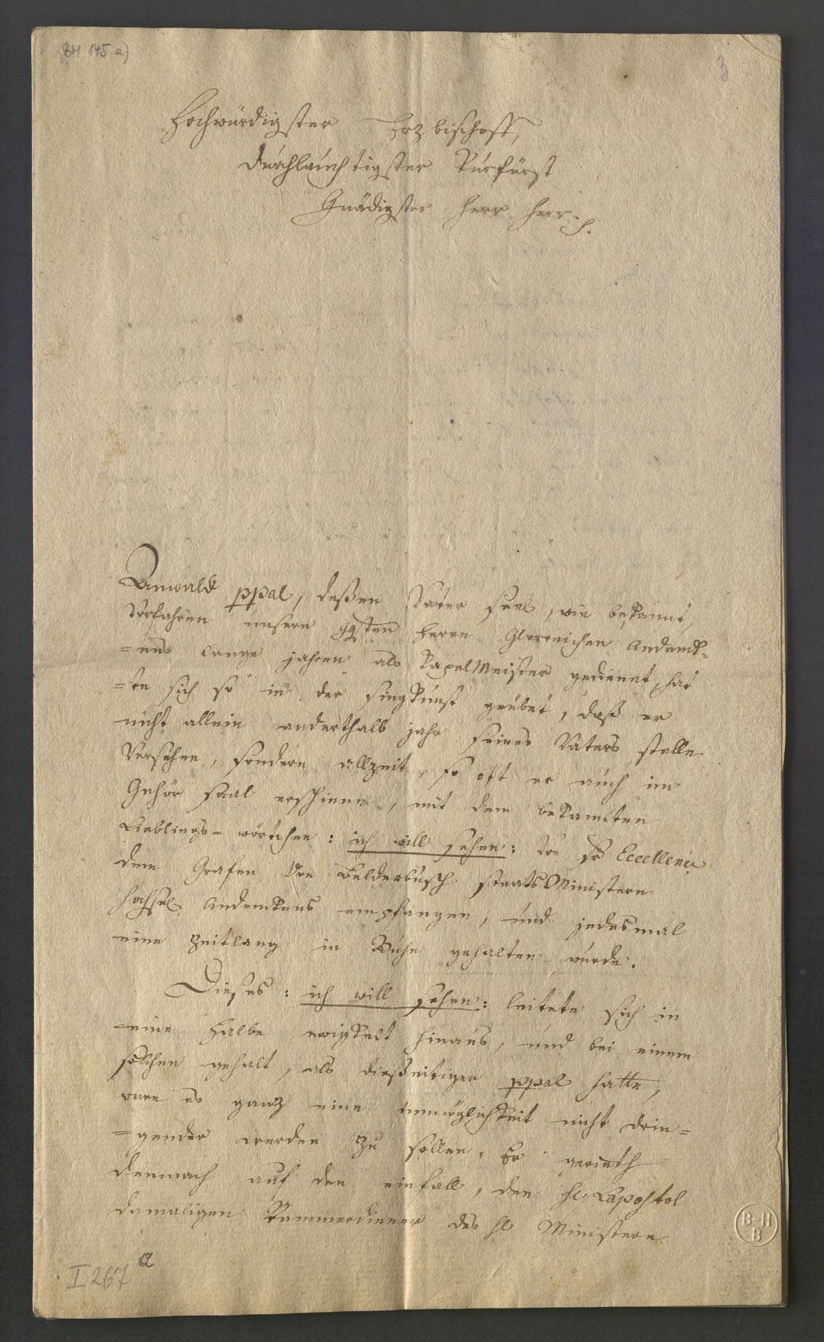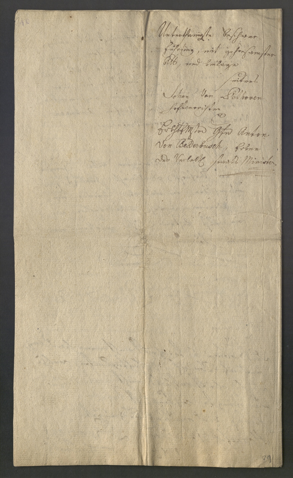 Beethovens Vater beklagt angeblich in dieser Eingabe an den Kurfürsten Maximilian Franz, Geschenke an den Staatsminister von Belderbusch seien nicht zurückgegeben worden, wodurch er in materielle Not geraten sei (Johann hatte diese "Geschenke" gemacht, um sein Gehalt als Hofmusiker aufzubessern und die Position seines Sohnes Ludwig zu stärken). Er bittet den Kurfürsten, die Erben Belderbuschs zur Rückgabe aufzufordern. Die Eingabe wurde von einem Juristen in Johann van Beethovens Namen verfaßt. Wie sich herausstellte, handelt es sich jedoch um eine Fälschung von Johannes Steinmüller, der offenbar von Johanns Geschenken an Belderbusch wußte. Steinmüller fälscht die Unterschrift des Honnefer Anwalts Phennings. Offenbar hatte die Regierung von Maximilian Friedrich Phennings das Schriftstück vorgelegt und ihn dazu befragt. Phennings distanziert sich aber in einer eigenhändigen Erklärung von dieser Schrift (Bl. 7r).