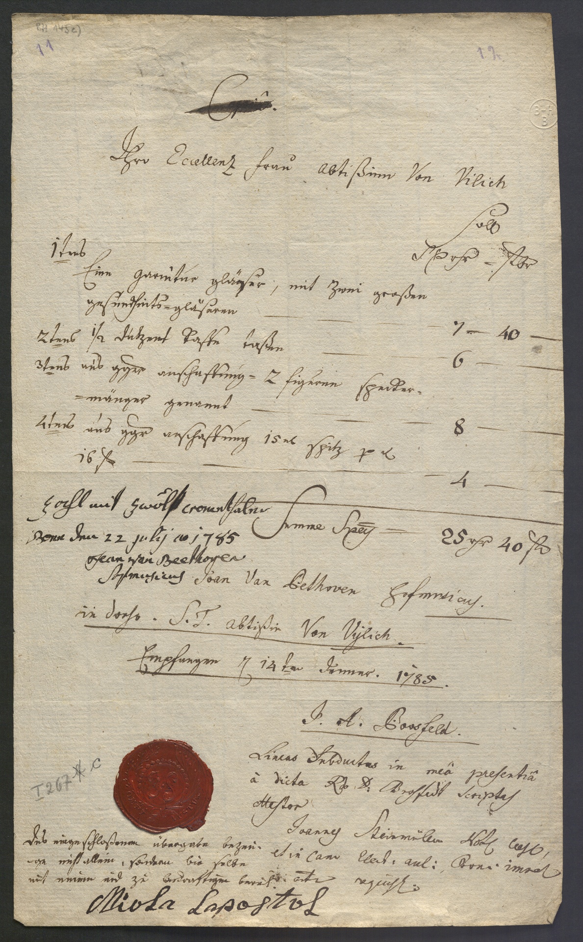 Johann van Beethoven, Eingabe an Kurfürst Maximilian Franz, Bonn, 1785