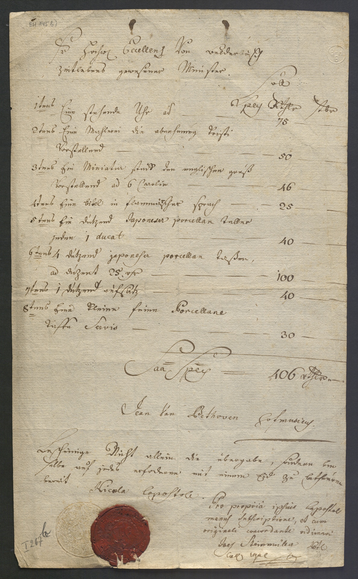 Auf zwei beigefügten Verzeichnissen werden die angeblichen Geschenke und deren Werte aufgeführt. (J.R.)
