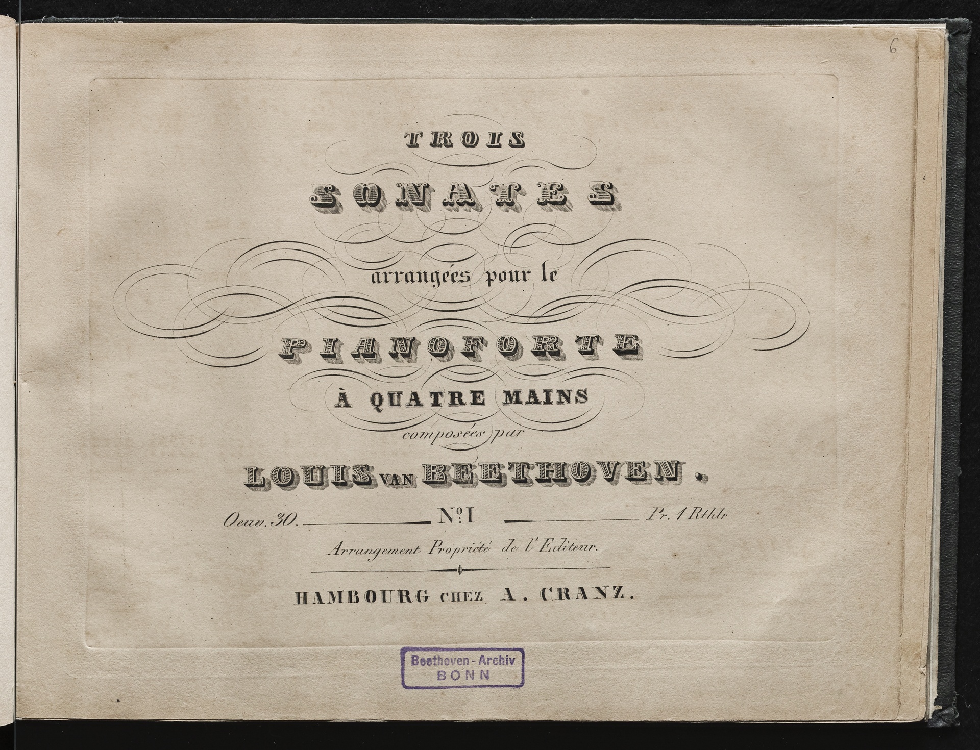 Ludwig van Beethoven, Sonate für Klavier und Violine (G-Dur) op. 30, 1, Bearbeitung für Klavier zu 4 Händen, Cranz