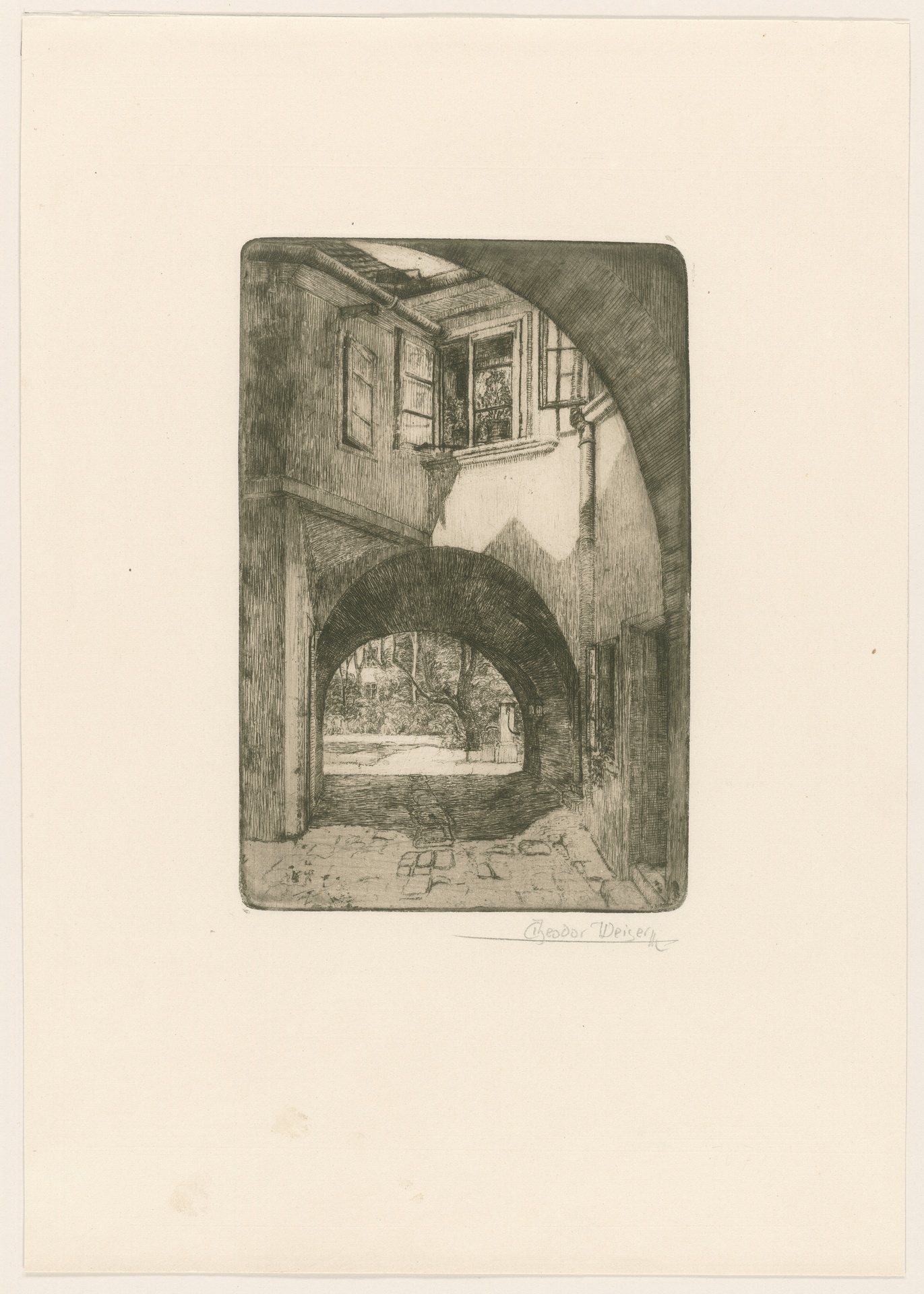Mödling, Hauptstraße 79, Wohnung von Ludwig van Beethoven (Hafnerhaus), Innenhof - Radierung von Theodor Weiser nach einer eigenen Zeichnung, um 1920