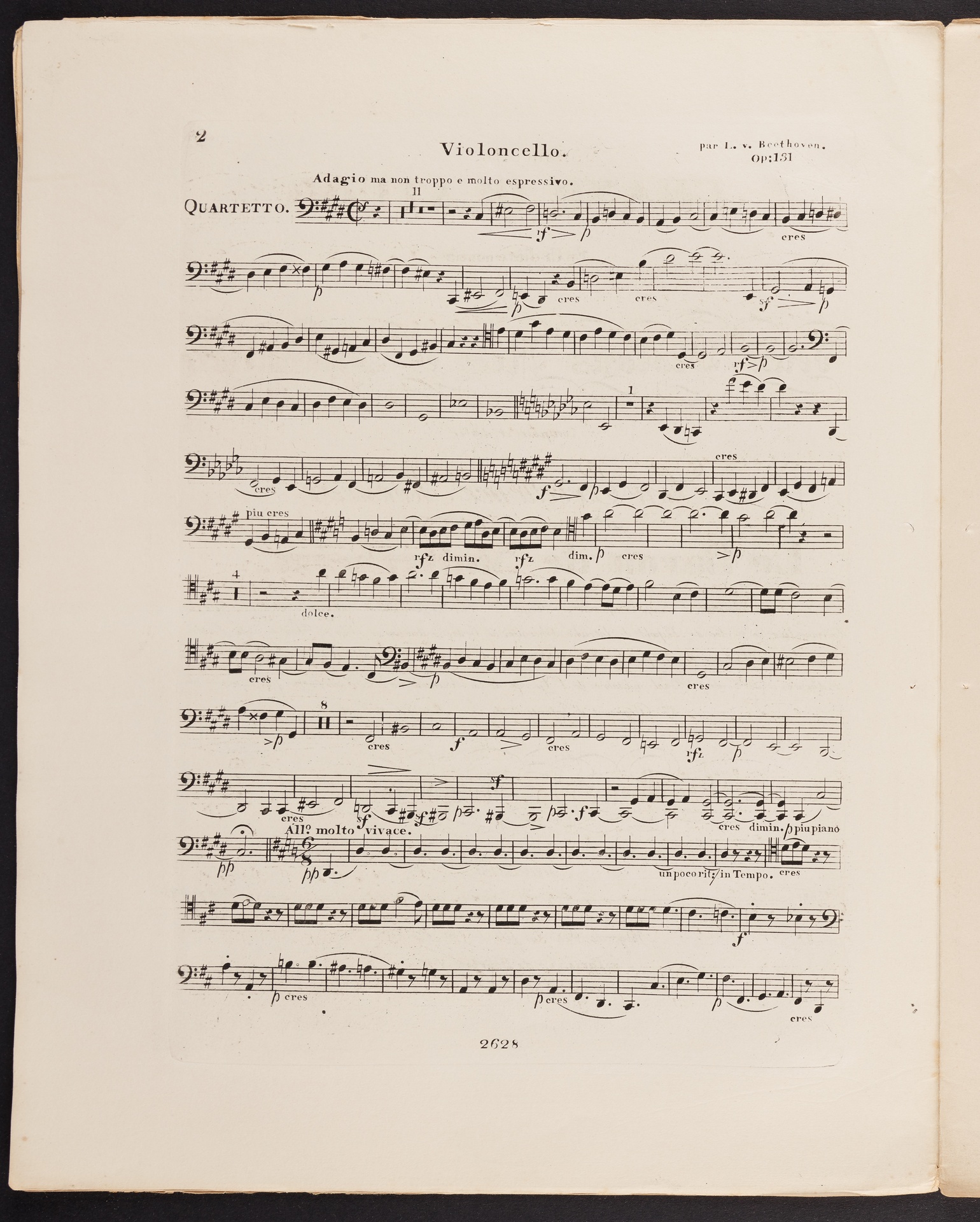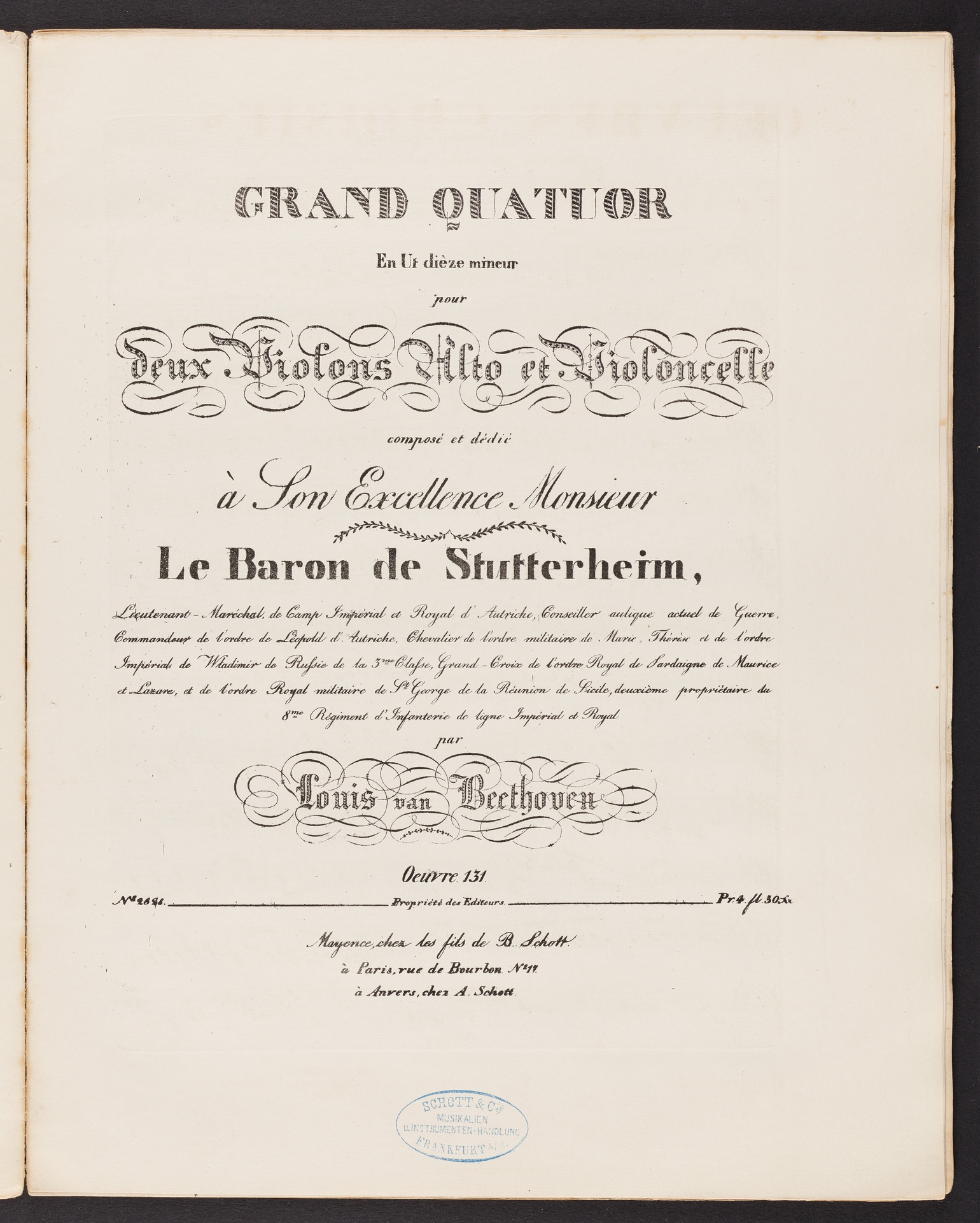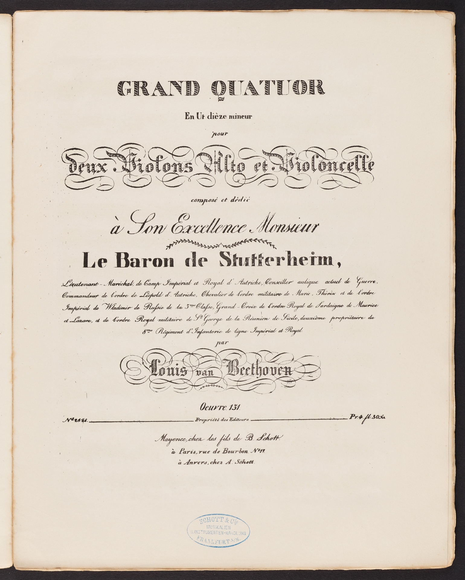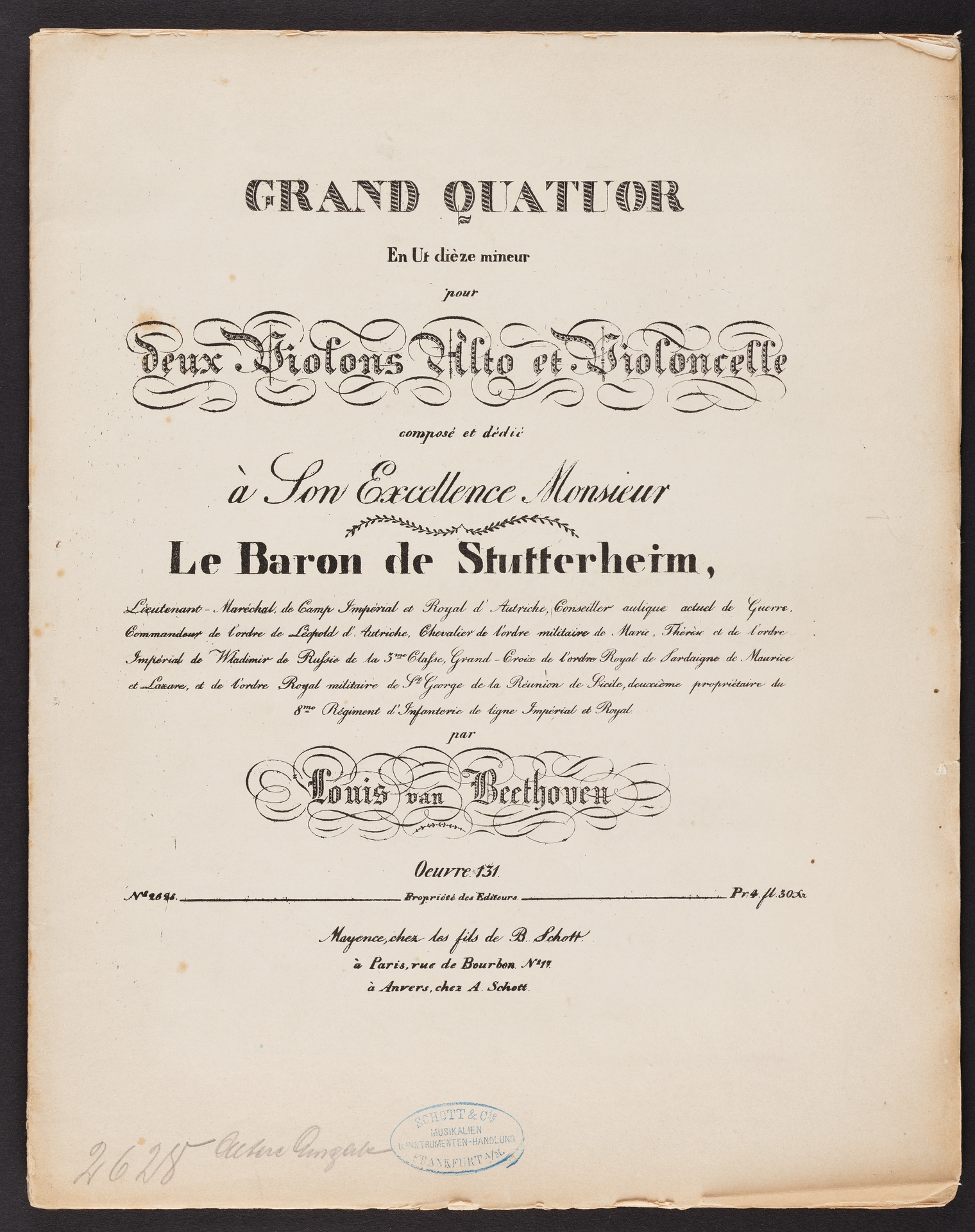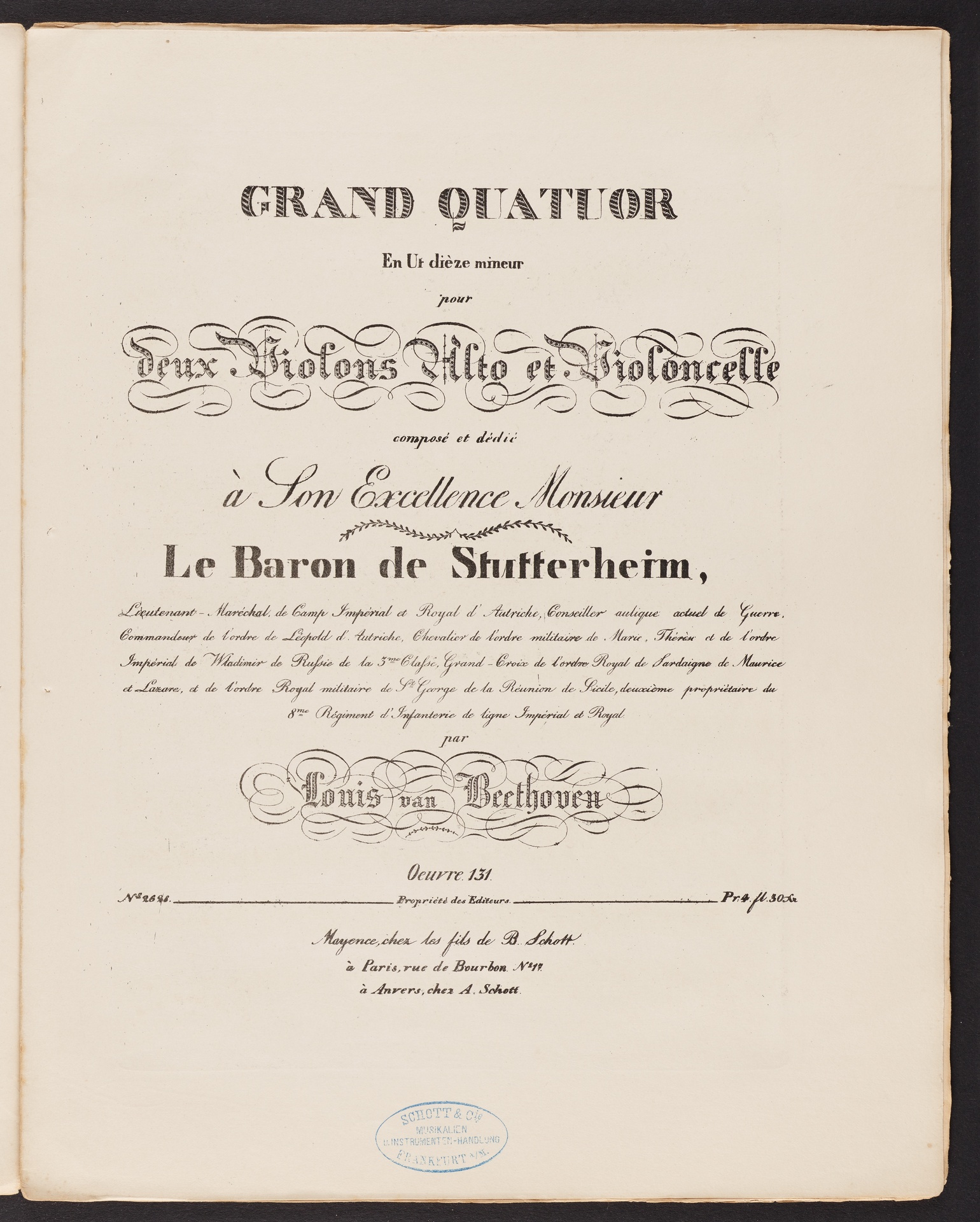 Ludwig van Beethoven, Quartett für 2 Violinen, Viola, Violoncello (cis-Moll) op. 131, Stimmen, Schott, 2628