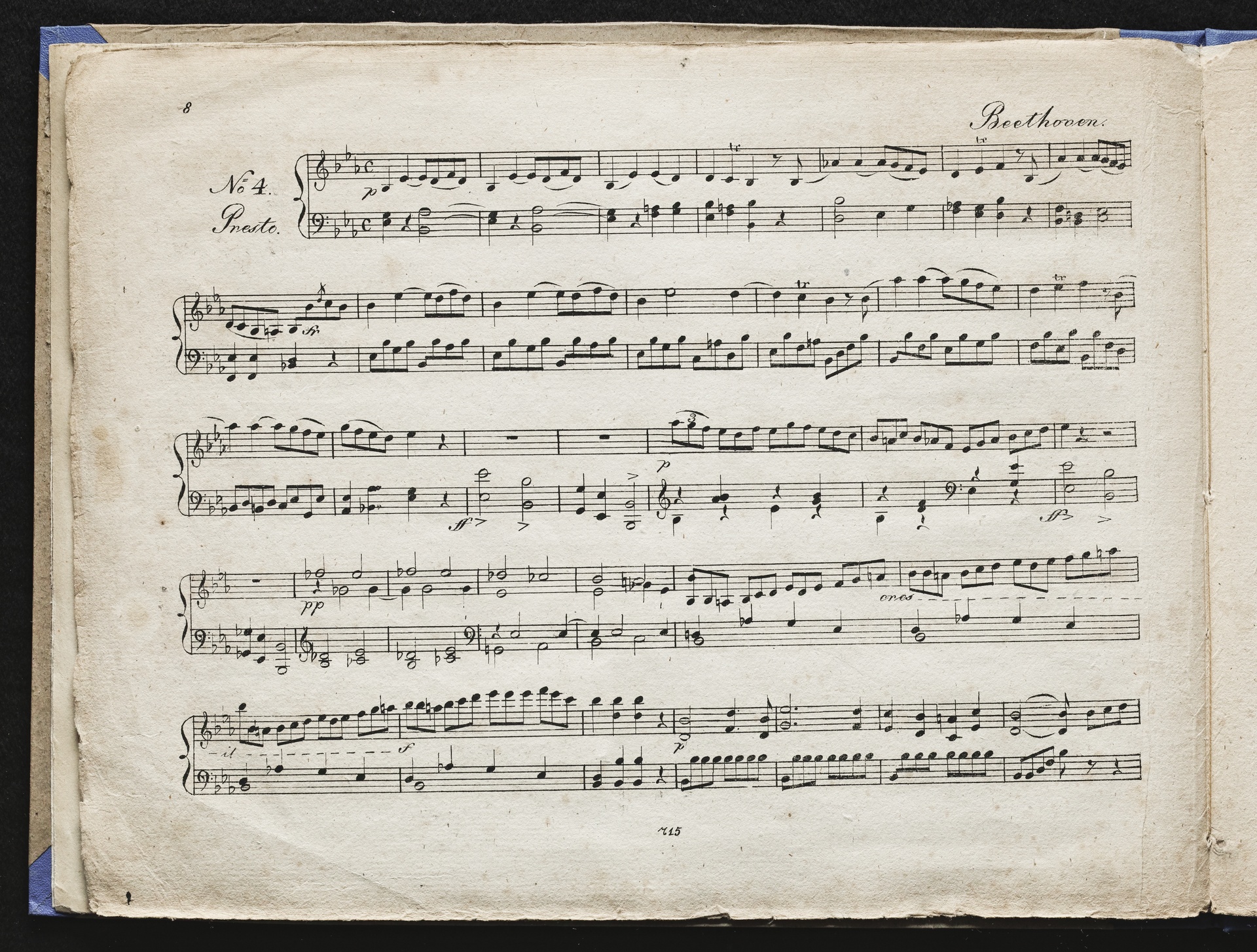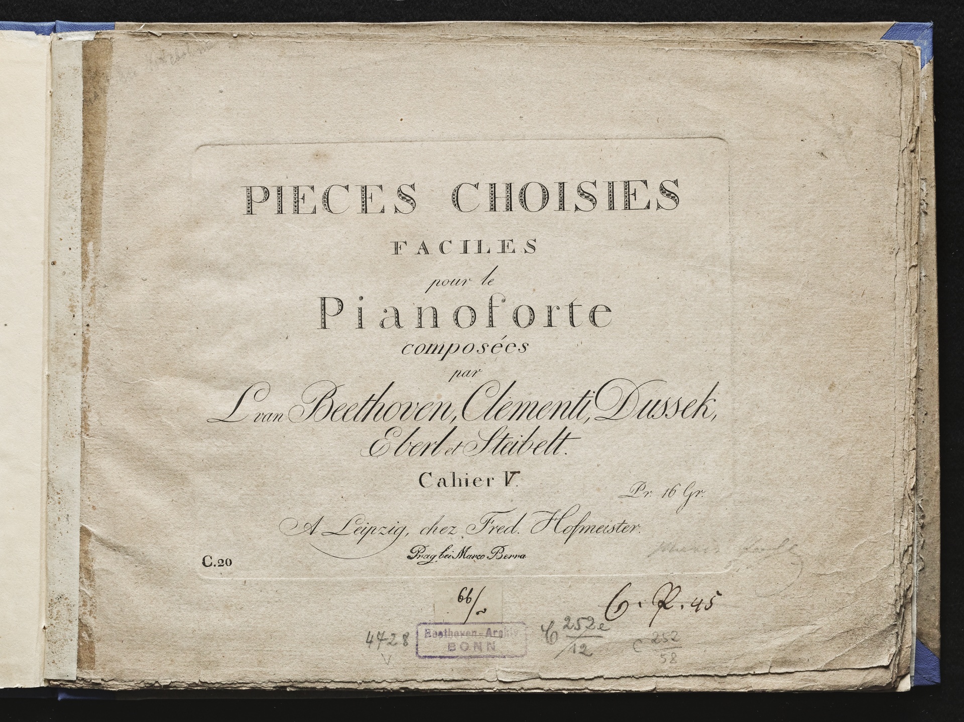 Ludwig van Beethoven, Septett für Violine, Viola, Klarinette, Horn, Fagott, Violoncello, Kontrabass (Es-Dur) op. 20, 2., 6. und 4. Satz, Bearbeitung für Klavier und weitere Werke, Hofmeister, 715