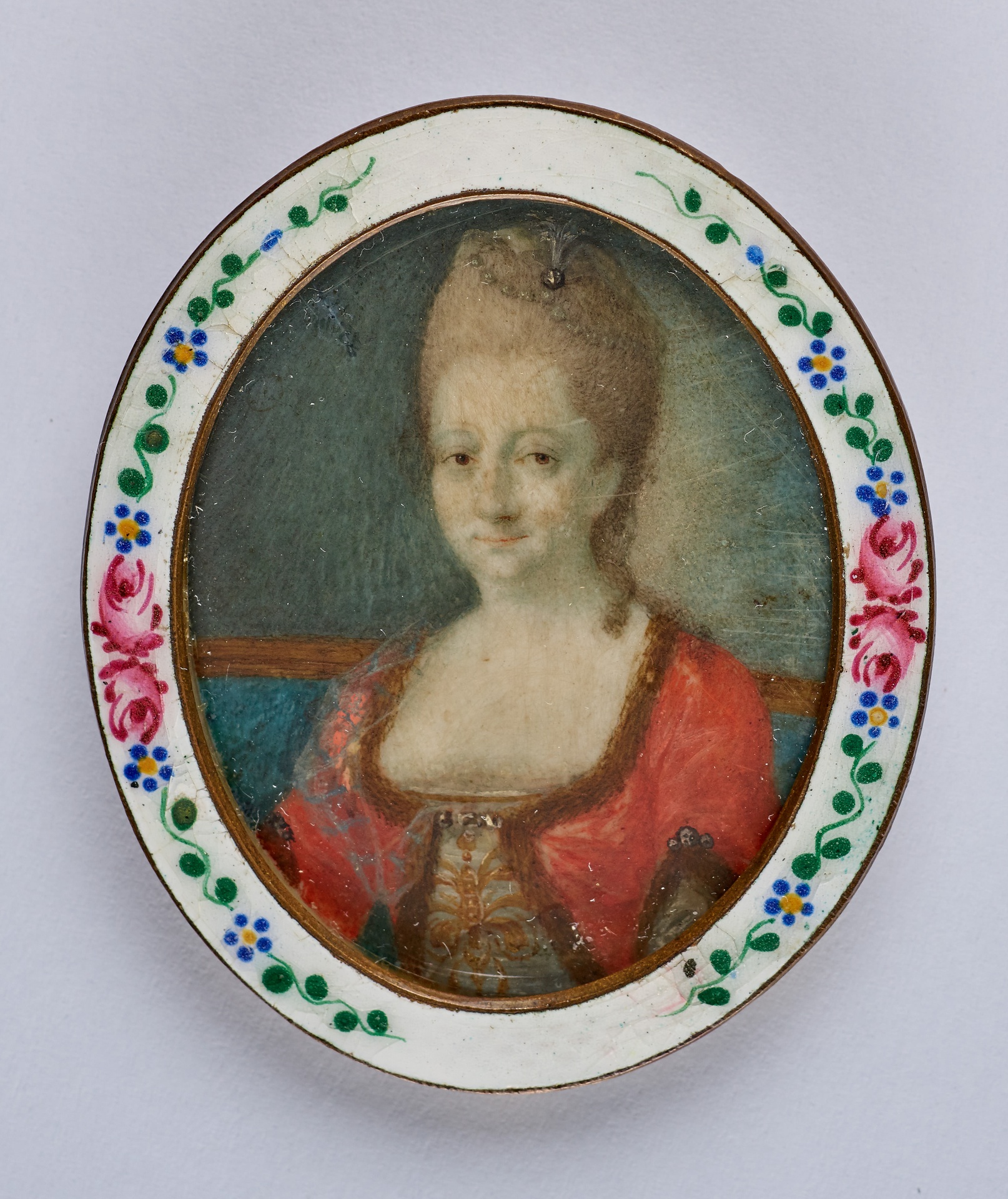 Helene von Breuning (1751-1838) - Anonyme Portraitminiatur im Porzellanrahmen mit Blumendekor