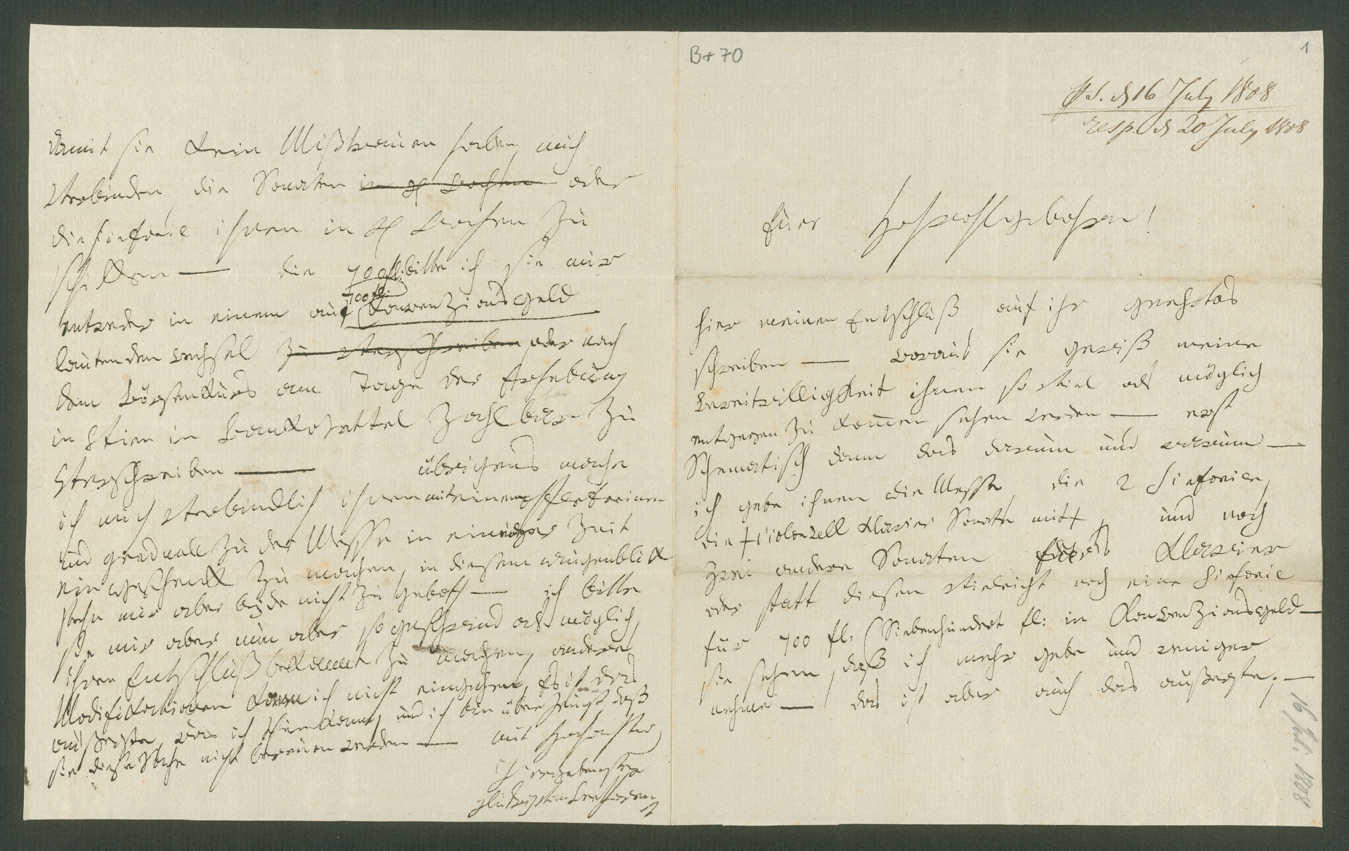 Ludwig van Beethoven, Brief an Breitkopf & Härtel in Leipzig, Heiligenstadt, etwa 10. Juli 1808, Autograph