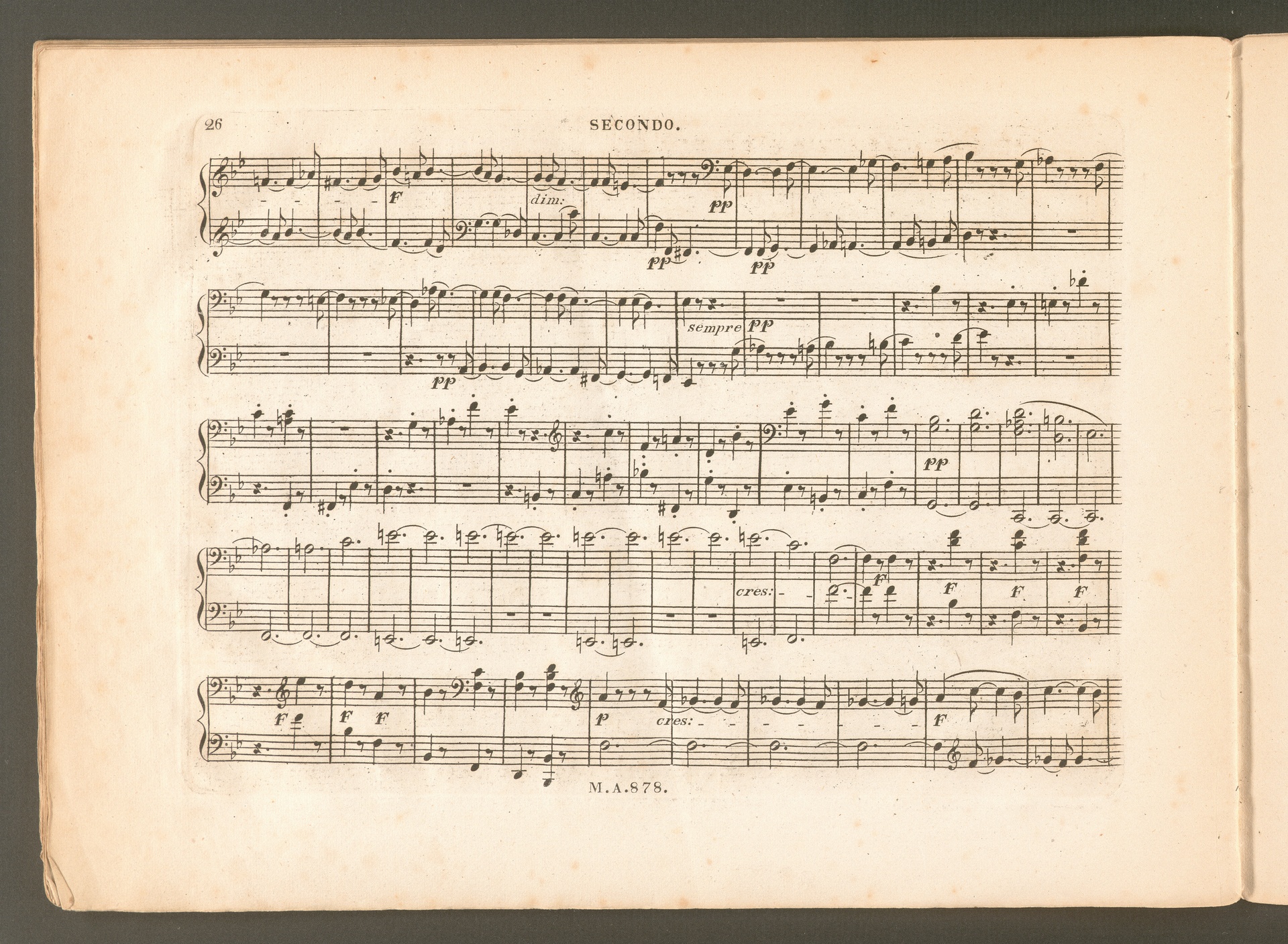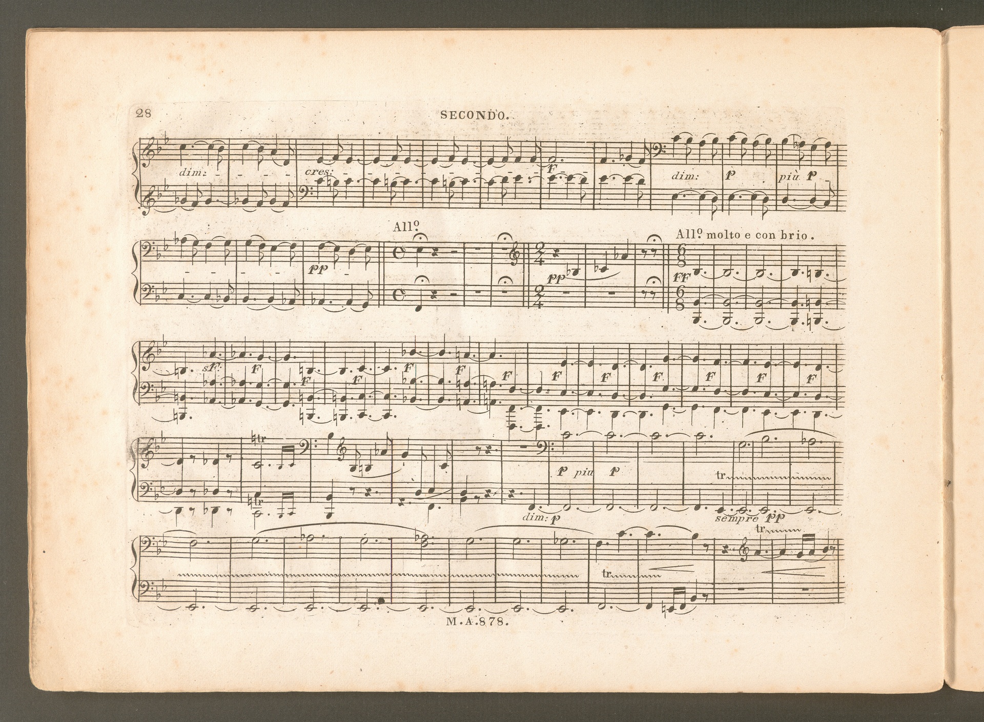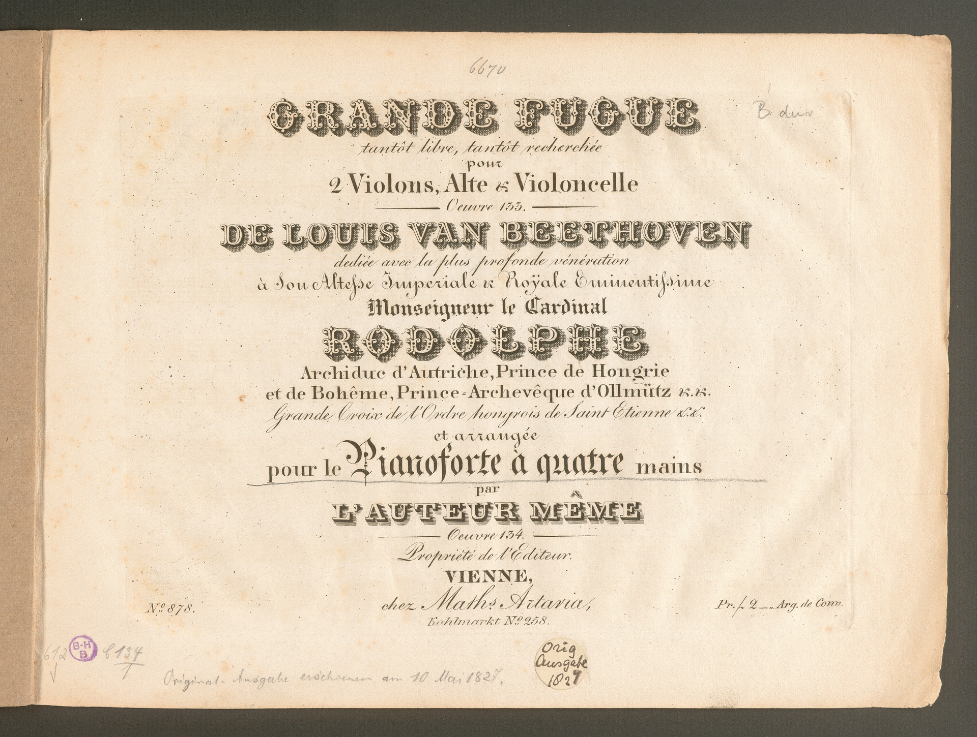 Ludwig van Beethoven, Fuge für 2 Violinen, Viola, Violoncello (B-Dur), Fassung für Klavier zu 4 Händen op. 134, Artaria, 878