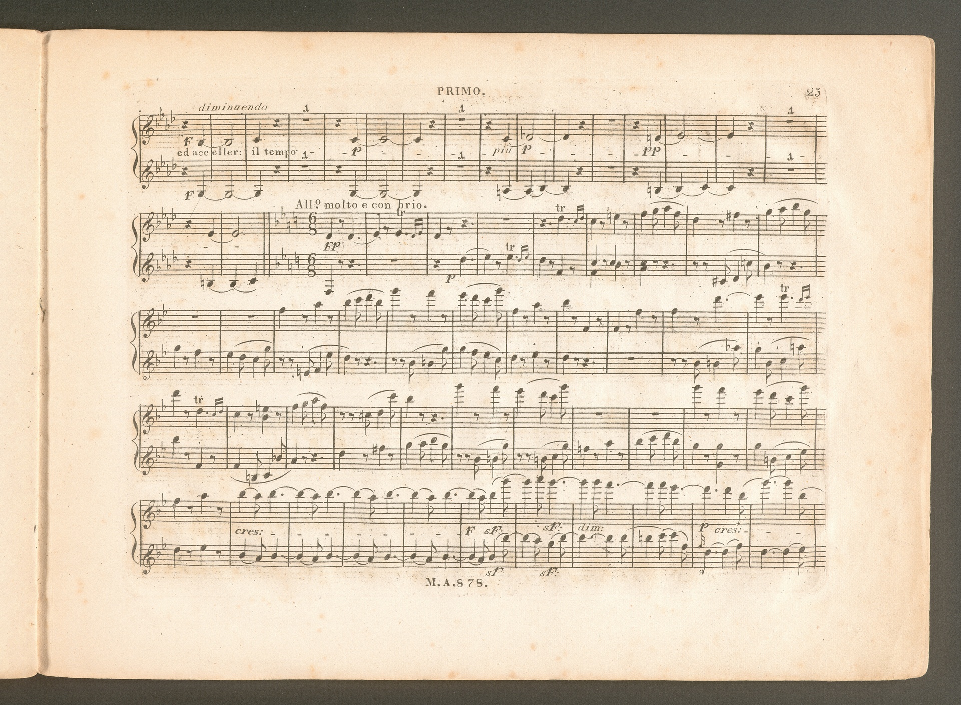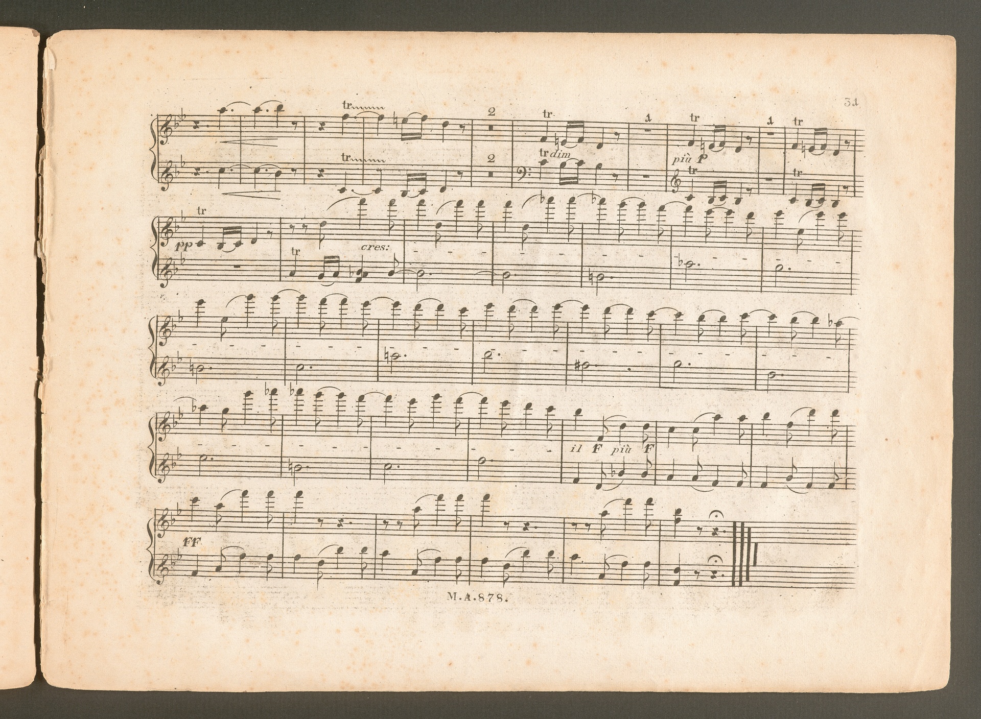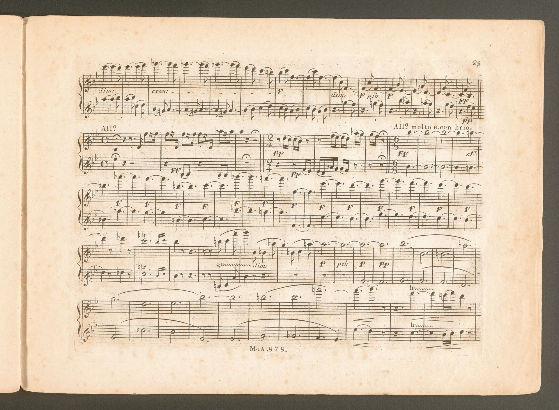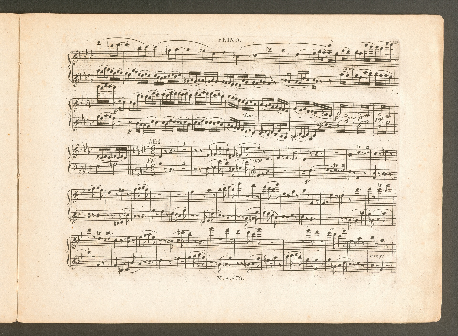 Ludwig van Beethoven, Fuge für 2 Violinen, Viola, Violoncello (B-Dur), Fassung für Klavier zu 4 Händen op. 134, Artaria, 878