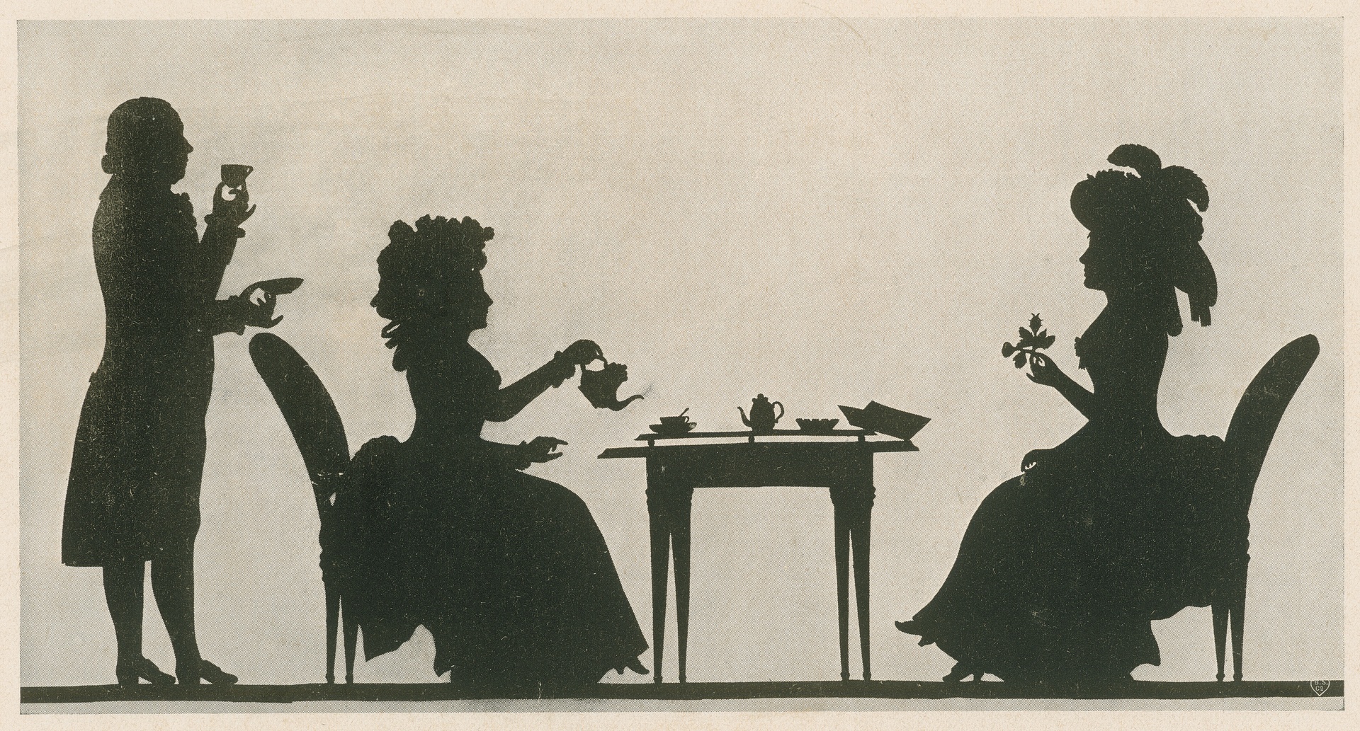 Familie von Breuning (3 Personen, sogenannte Teestunde) - Mit B. S. Co. signierte Reproduktion einer Silhouette von ca. 1782