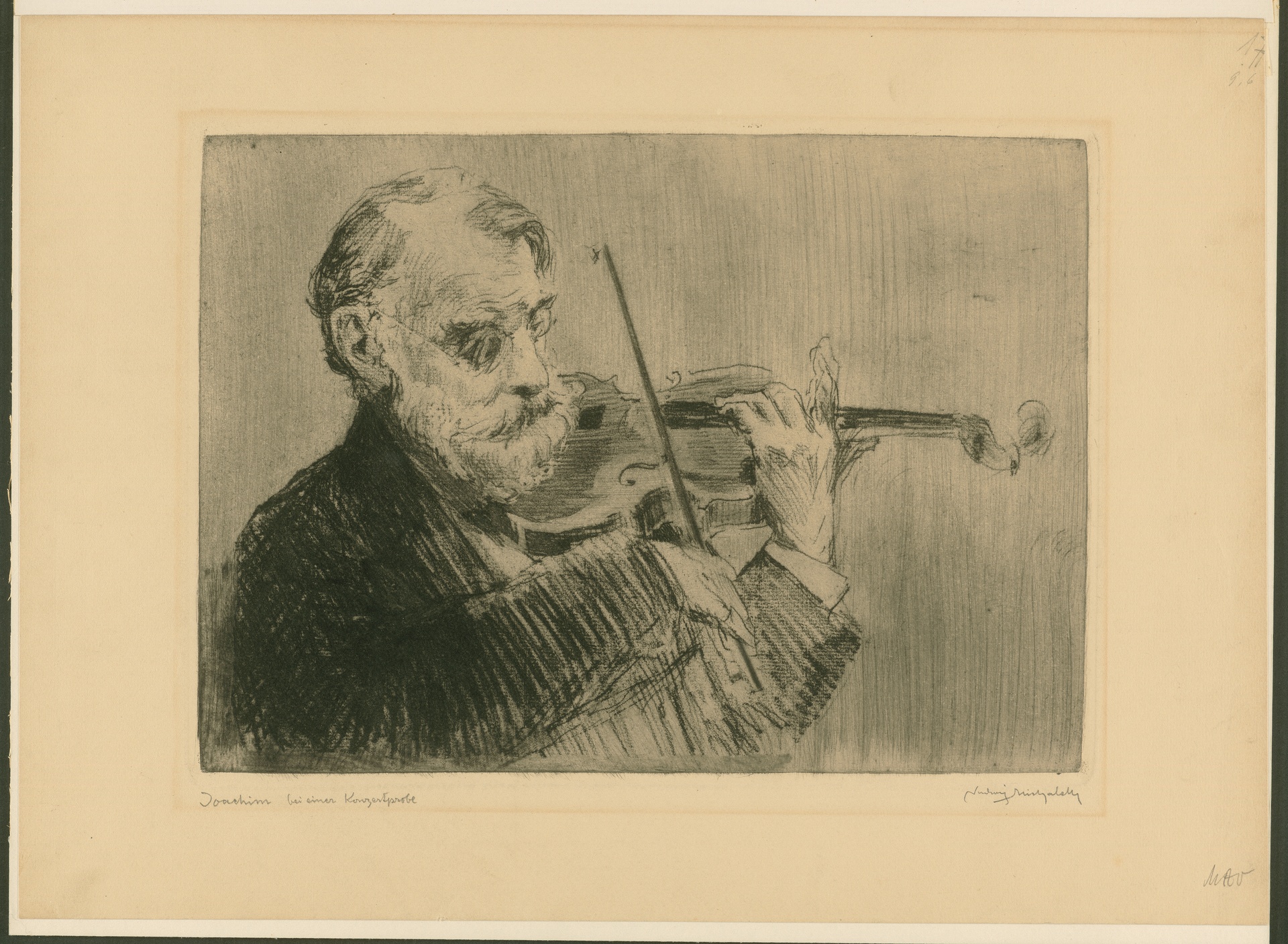 Joseph Joachim (1831-1907) bei einer Konzertprobe - Radierung von Ludwig Michalek nach einer eigenen Zeichnung, Anfang 20. Jahrhundert