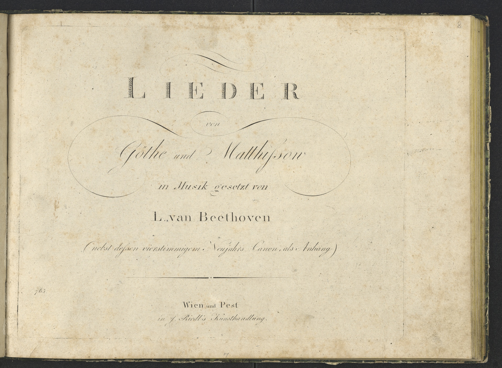 Ludwig van BeethovenJohann Wolfgang von GoetheFriedrich von Matthisson, Lieder für Singstimme und Klavier und vierstimmiger Kanon WoO 136, WoO 137, op. 75, 1-2, Riedl, 765