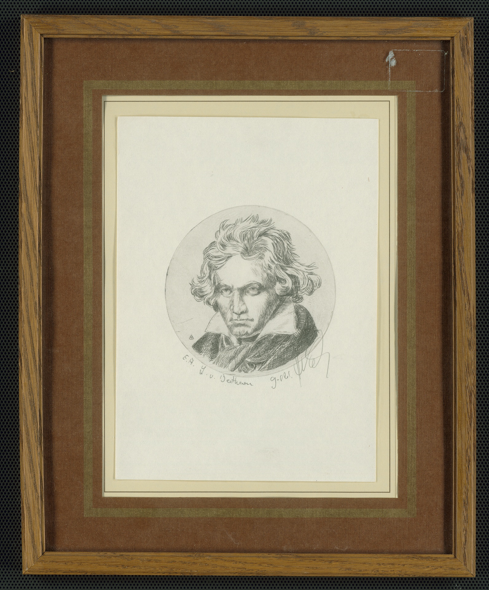 Ludwig van Beethoven - Radierung, bezeichmit mit dem Monogramm E.A., gestaltet nach dem Gemälde von Joseph Karl Stieler, 2. Hälfte 20. Jahrhundert?