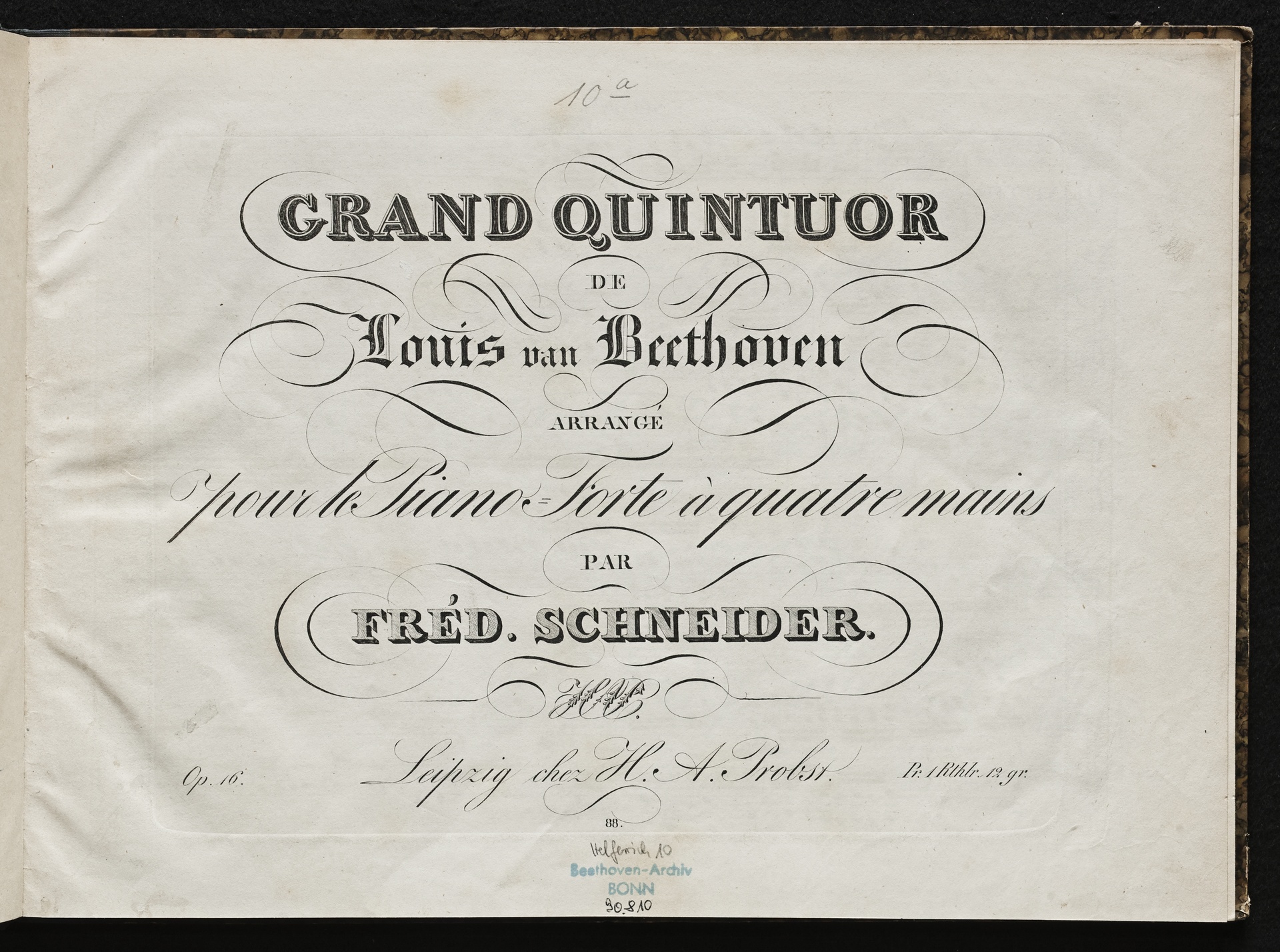 Ludwig van Beethoven, Quintett für Klavier, Oboe, Klarinette, Fagott und Horn (Es-Dur) op. 16, Bearbeitung für Klavier zu 4 Händen von Friedrich Schneider, Probst, 88