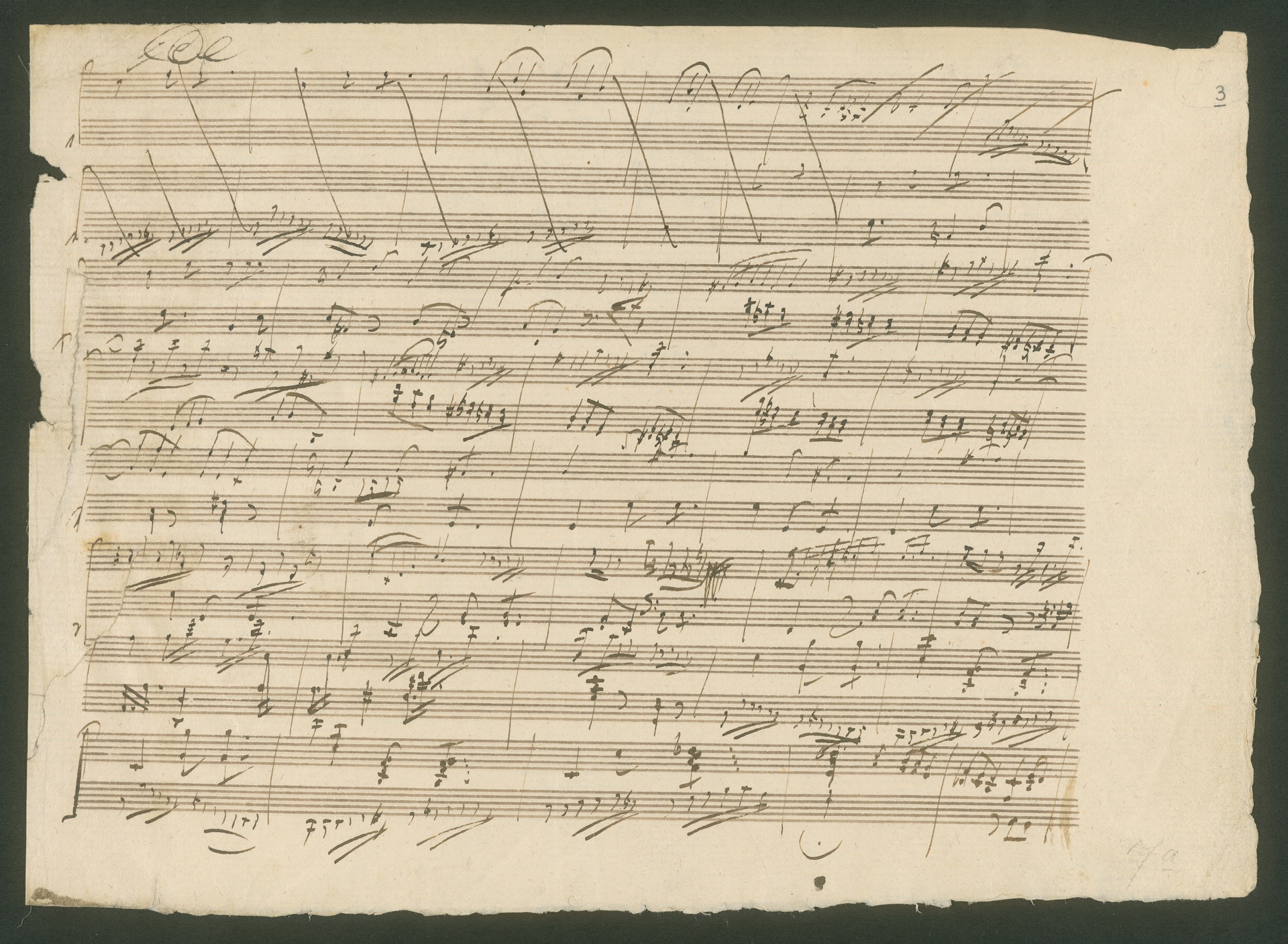Wie oben bereits angesprochen, haben die beiden ersten Blätter naturgemäß die gleiche Papiersorte. Sie wurden wahrscheinlich schon im Jahr 1795 beschrieben. Gute zwei Jahre später nahm sich Beethoven die Komposition noch einmal vor, überarbeitete sie und änderte das Metrum vom 3/4-Takt in einen 6/8-Takt. Dazu verwendete er ein neues Blatt. Dieses Blatt 3 des vorliegenden Autographs entstammt einer anderen Papiersorte. Auch den Schriftzügen ist ihre jüngeres Entstehungsdatum anzusehen. Die Nummerierung über dem Beginn der Bagatelle stammt allerdings aus noch späterer Zeit. In Zusammenhang mit der Ausgabe seiner Bagatellen op. 119 suchte Beethoven zu Beginn der 1820er Jahre mehrere kleine ältere Kompositionen zusammen, die er als Bagatellen hätte veröffentlichen können. Diese Stücke nummerierte er durch (eine Aufstellung findet sich bei Barry Cooper, Beethoven and the Creative Process, Oxford 1990, S. 265), wobei WoO 52 die Nr. 10 erhielt. (J.R.)