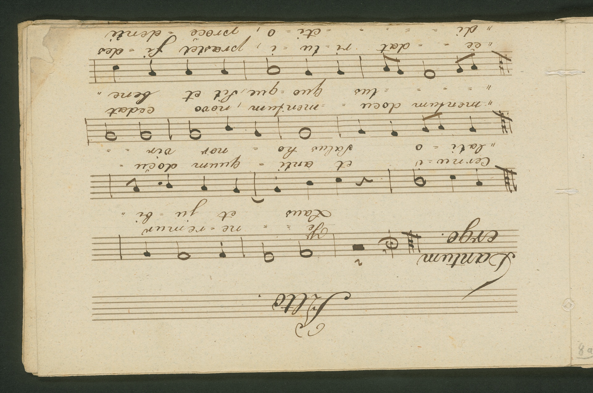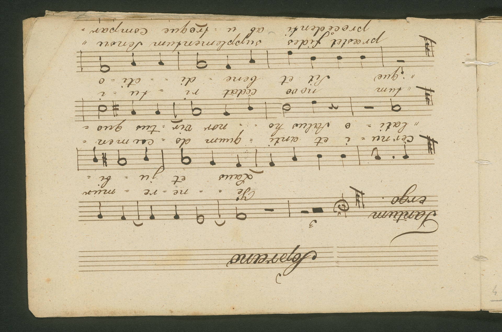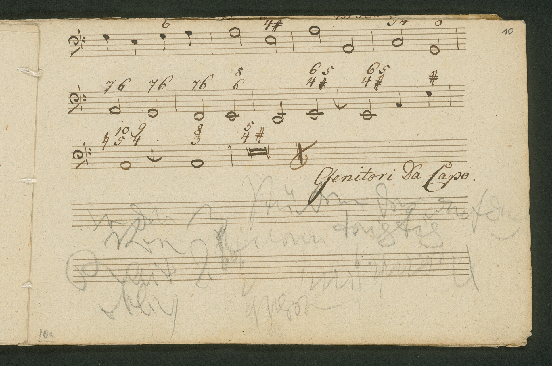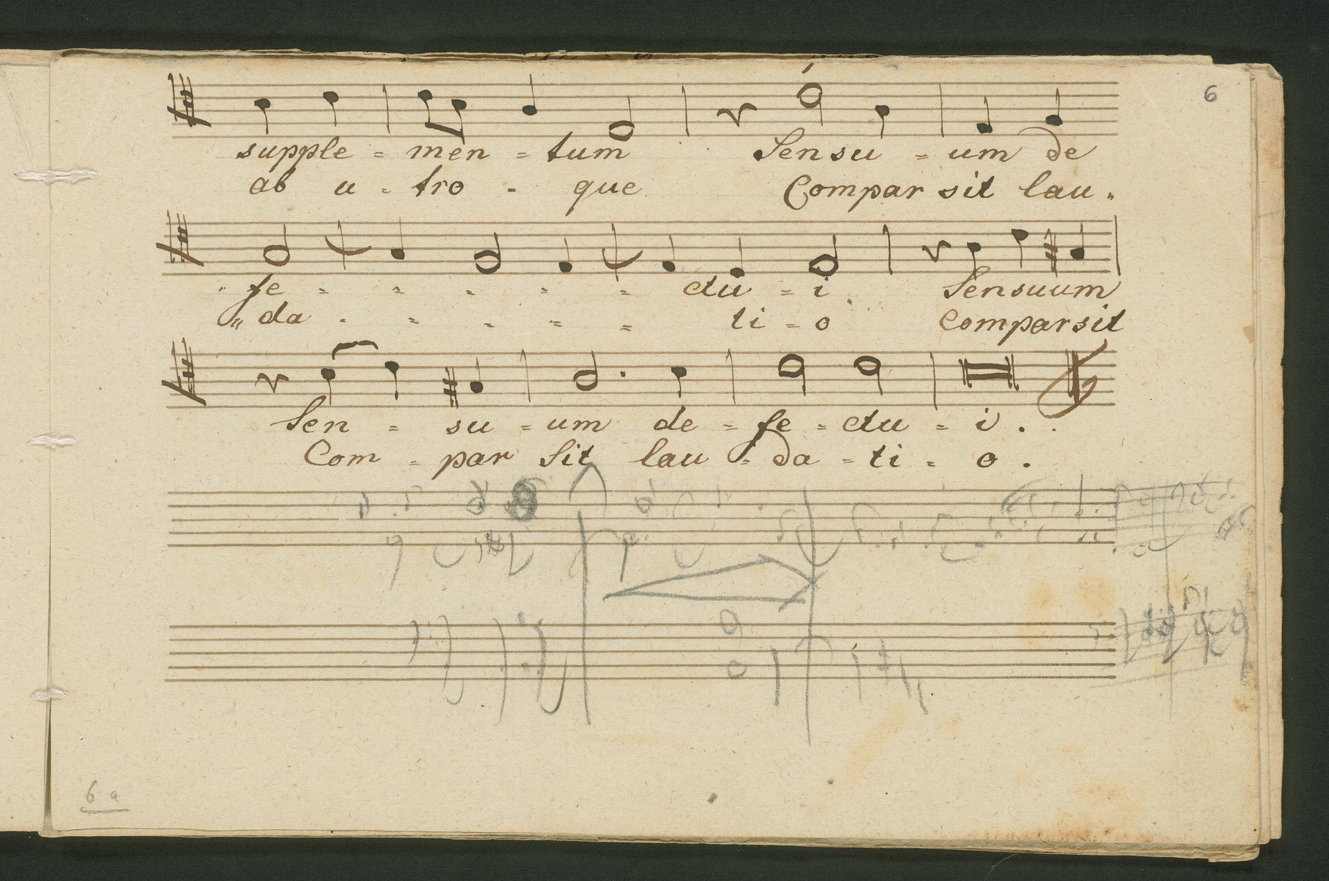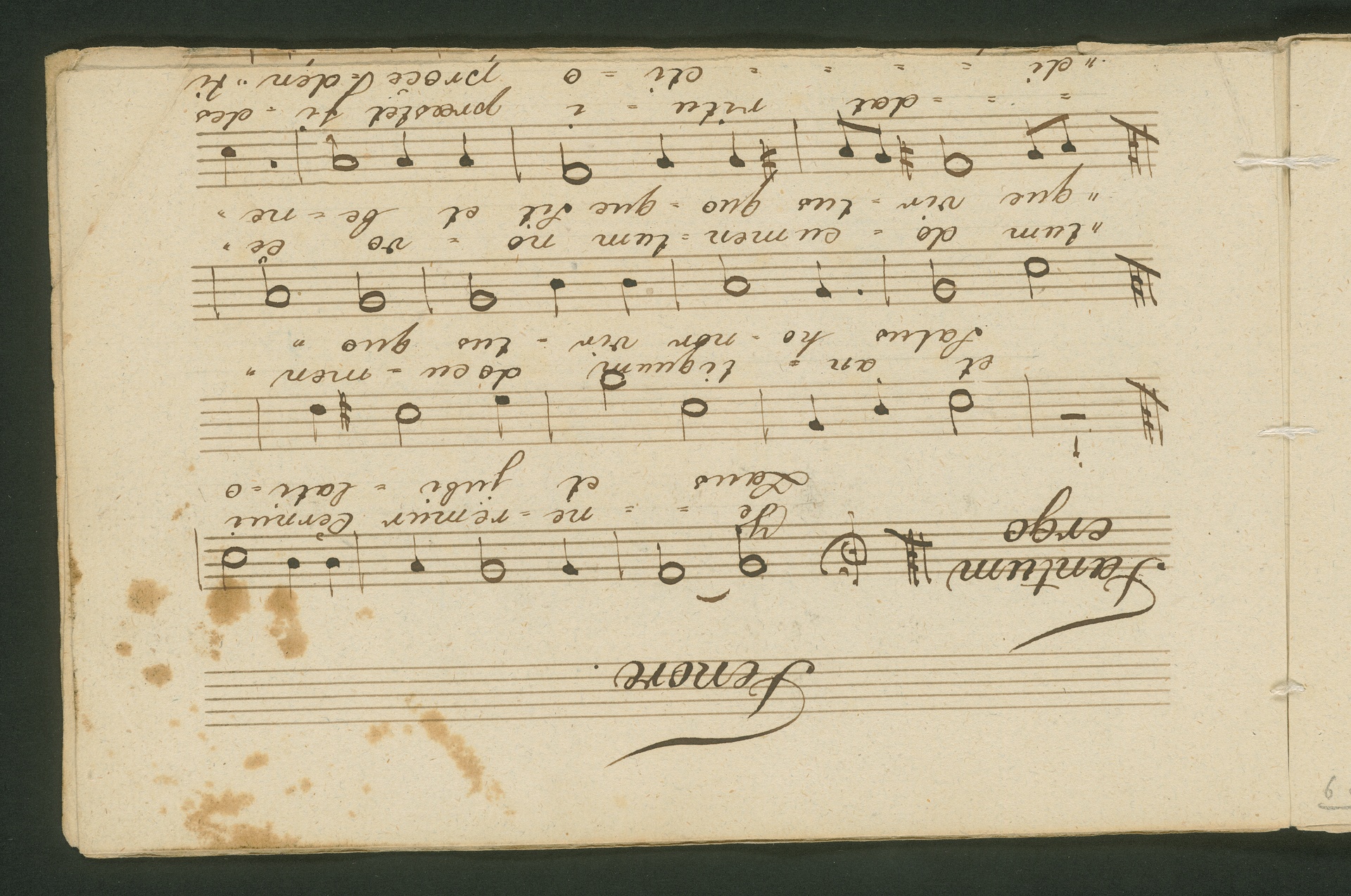 Dieses Taschenskizzenbuch, benannt nach seinem früheren Besitzer Romain Rolland, birgt ein Kuriosum. Normalerweise verwendete Beethoven zur Herstellung seiner kleinformatigen Taschenskizzenhefte neues, unbenutztes Notenpapier. Nicht so bei diesem, das übrigens noch die originale Heftung hat und offensichtlich so intakt ist, wie Beethoven es hinterließ. Beethoven benutzte für dieses Heft die Abschrift eines "Tantum ergo" von J. Stadelmayr für vier Gesangstimmen. Ob er gerade kein anderes Papier zur Hand hatte, aber dringend Notenpapier benötigte? Die Kopistenabschrift war auf hochformatigem Papier geschrieben, einige Rückseiten waren jedoch leer. Beethoven faltete die Blätter auf die Hälfte zusammen, schnitt sie auseinander und notierte seine Skizzen nicht nur auf den leer gebliebenen Seiten, sondern auch auf einzelne freie Systeme unterhalb der Abschrift. Beim Durchblättern des Heftes fallen daher drei unterschiedliche Typen von Seiten auf: Jene, auf denen sich Beethovens Bleistiftskizzen befinden. Jene, auf der wir die mit Tinte geschrieben Abschrift eines Berufskopisten zu Stadelmayers "Tantum ergo" erkennen können. Diese Seiten stehen wegen der Faltung der Blätter bei der Herstellung des Heftes auf dem Kopf. Und schließlich jene Seiten, die sowohl das eine als auch das andere bergen: im oberen Teil die Abschrift in Tinte, auf frei gebliebenen Systemen darunter Beethovens Skizzen in Bleistift. Alle Skizzen Beethovens beschäftigen sich mit dem 3. Satz der Neunten Sinfonie. (J.R.)