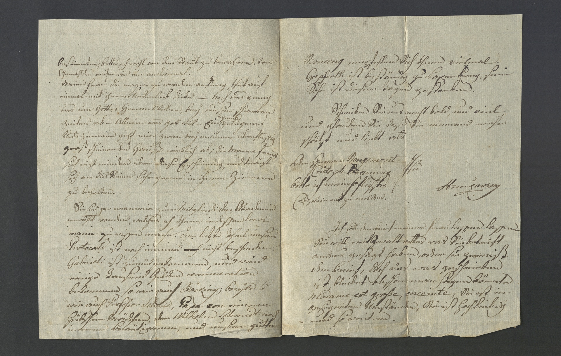 Der Chirurgie-Professor Hunczovsky schreibt an Franz Gerhard Wegeler, der im Juni 1796 Wien verlassen hatte und nach Bonn zurückgekehrt war, und bedankt sich für dessen Nachrichten. Hunczovsky gibt auf vielfache Art seiner Sympathie für Wegeler Ausdruck. Er zweifelt an den Versprechungen der Politiker, bald werde es Frieden geben. Hunczovsky berichtet von der Schwangerschaft seiner Frau und von Wegelers Wahl in die Akademie, die allerdings noch nicht offiziell verkündet sei.
