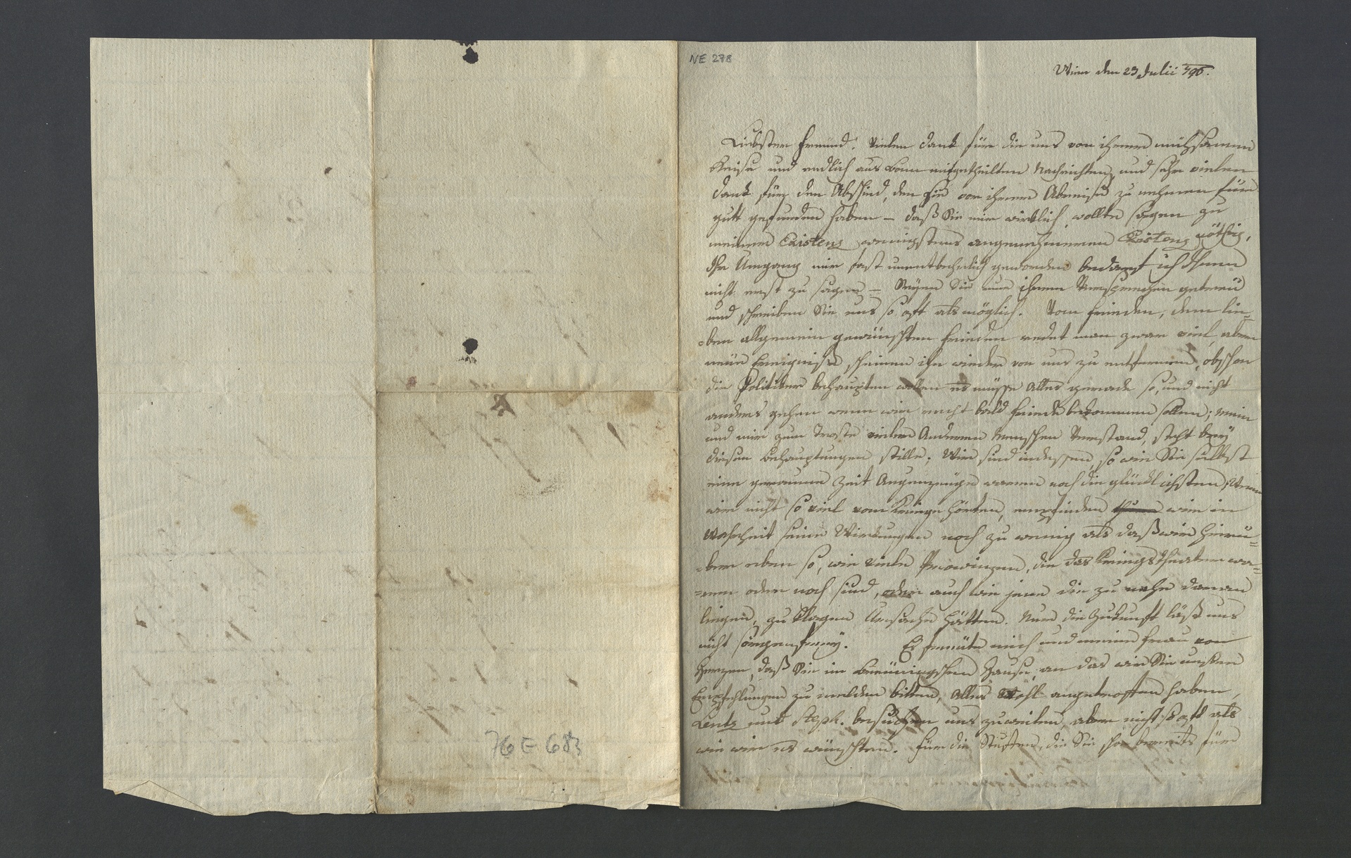Johann Nepomuk Hunczovsky, Brief an Franz Gerhard Wegeler, Wien, 23. Juli 1796, Autograph