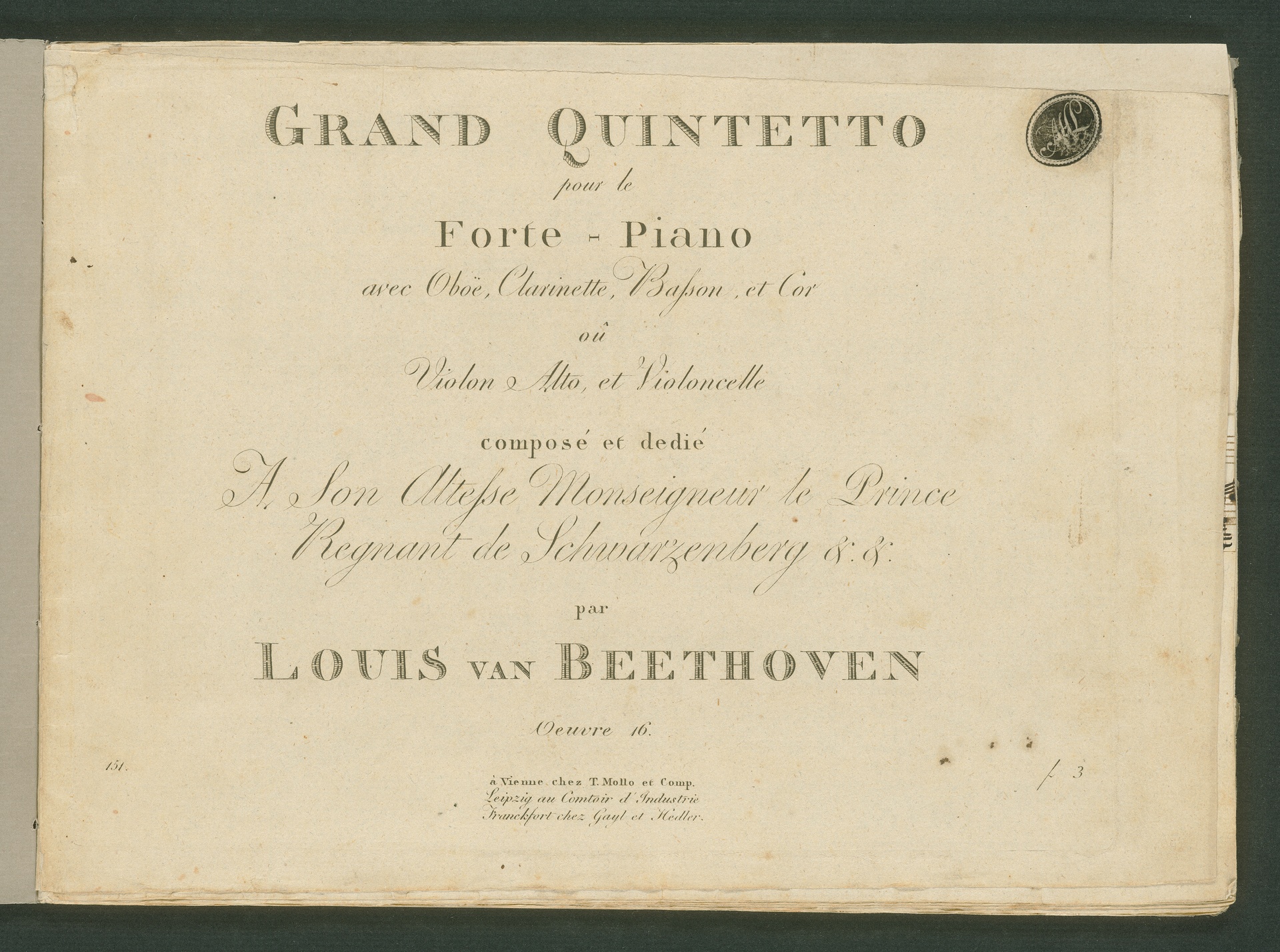 Ludwig van Beethoven, Quintett für Klavier, Oboe, Klarinette, Fagott und Horn (Es-Dur) op. 16, Stimme, Mollo, 151; Teilscan